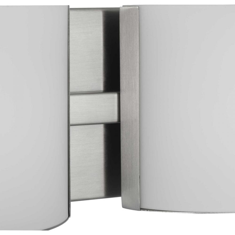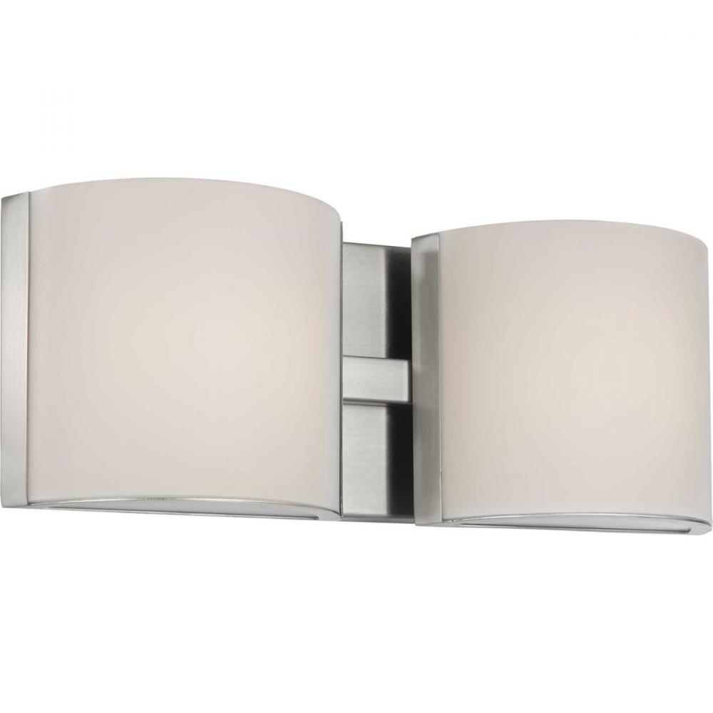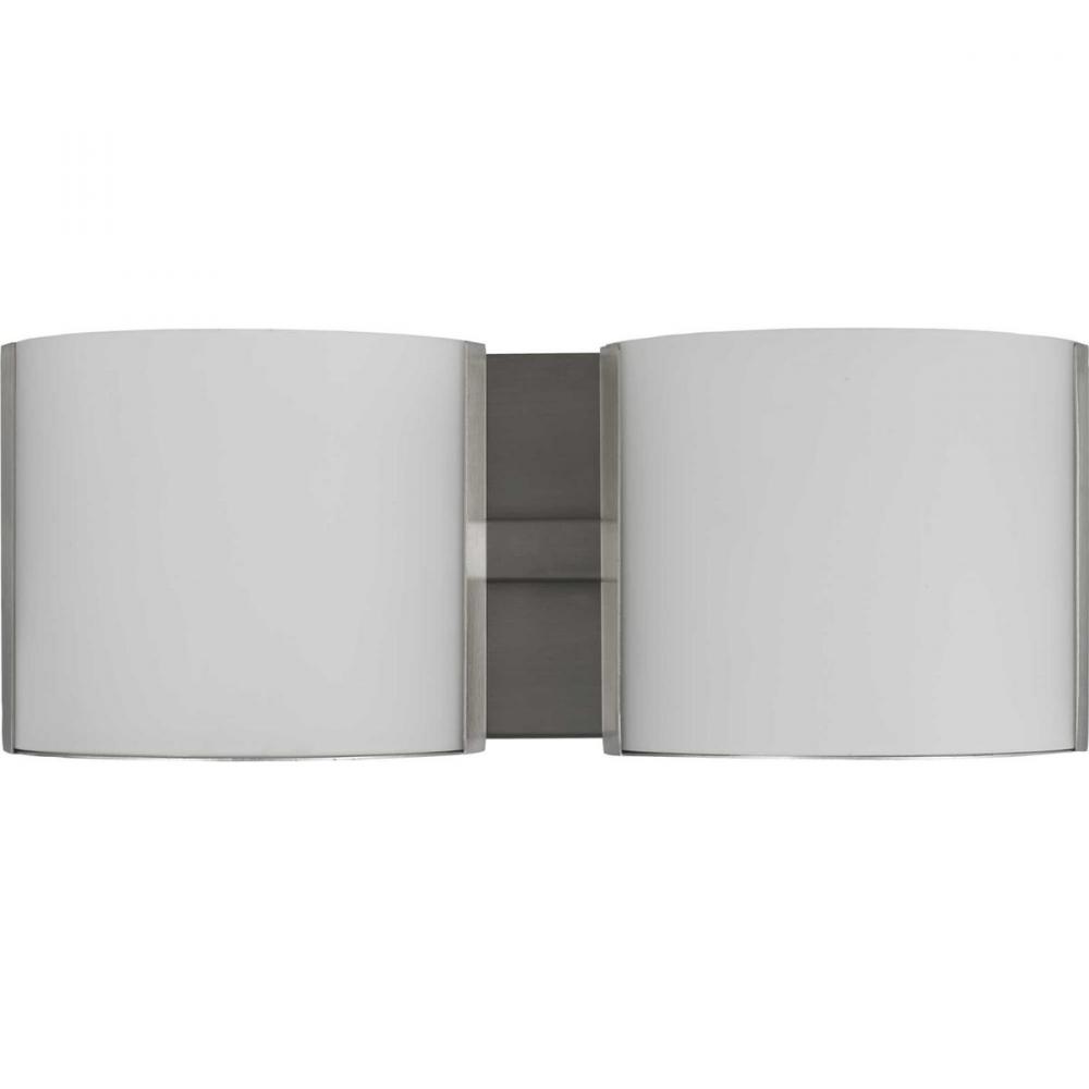 Ideal for a bathroom and powder room.;Perfect for modern and transitional style settings;Beautiful brushed nickel finish;Elegant etched glass shades;Fixture can mount horizontal and vertical;Includes 2 integrated LEDs (10 W), 1057 lumens, 3000 K, 90 CRI,