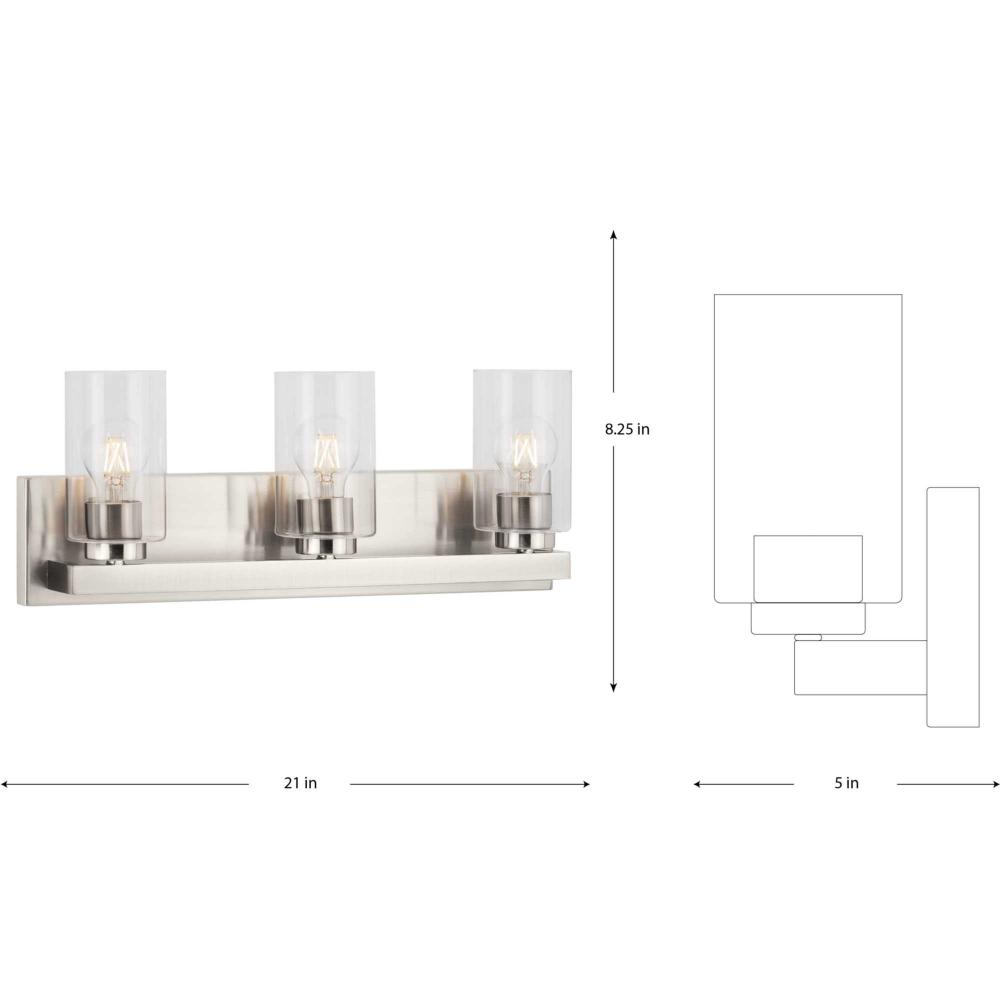 Update any bathroom with the Goodwin Vanity Light, whose clean design seamlessly blends with todays modern decor. Finished in subtle brushed nickel, its crisp lines highlight the modern profile of the rectangular backplate that supports columns of clear glass shades for bright illumination in the bath. This versatile fixture can be mounted with glass facing up or down, casting even illumination in any setting.