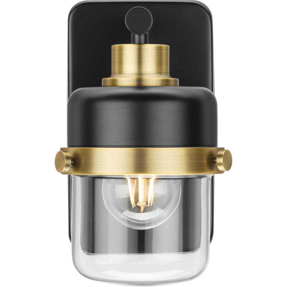 The Beckner Collection reflects mid-century and industrial design, with mechanical knobs and hooded lights finished in crisp matte black accented by matte black. Beckner’s tactile appeal welcomes curiosity and adds depth to bathrooms, hallways and living rooms in mid-century modern, transitional and urban industrial settings. An oblong backplate holds a rod which suspends its vintage-style shade complemented by clear glass, delivering bright illumination while adding a modern touch. This versatile fixture can be mounted up or down, increasing its design flexibility. cULus damp location listed, with a one-year warranty to guarantee your complete satisfaction. Progress Lighting products are designed for exceptional quality, reliability, and functionality.