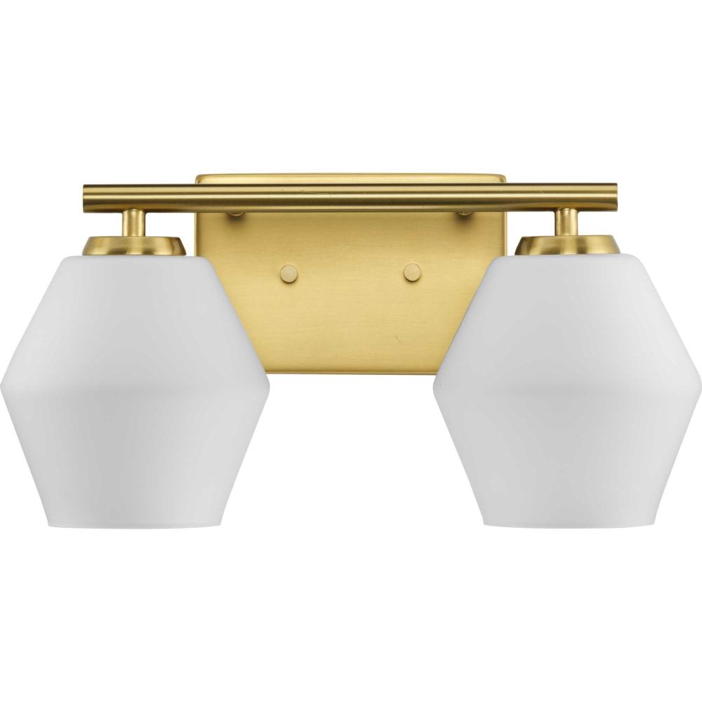 A softened diamond silhouette brings modern appeal to the Copeland Vanity Light. The geometric opal glass shades delivers elegant illumination to bathrooms in mid-century modern and contemporary settings. Mount the light fixture with the glass facing up or down for more design flexibility.