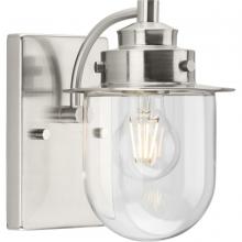 The nostalgic Northlake Collection combines classic design influences with nautical inspiration. Finished in vintage brass, the rounded diffuser and layered caps are reminiscent of floating buoys and weekends on a mountain lake. A clear glass shade casts a pleasing glow in bathrooms, powder rooms, hallways and living rooms in coastal and transitional settings. This versatile fixture can be mounted up or down, increasing its design flexibility. It is cULus damp rated and has a one-year warranty to guarantee your complete satisfaction. Progress Lighting products offer exceptional quality, reliability, and functionality. .