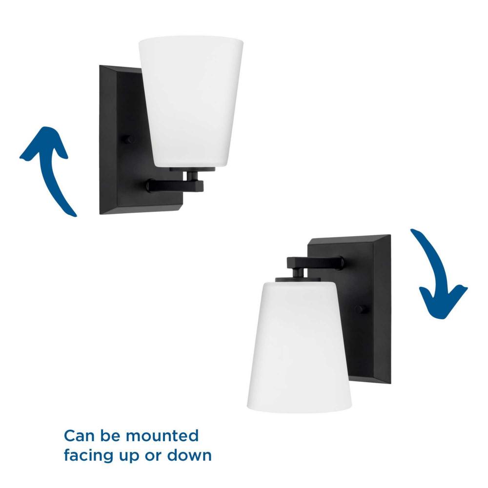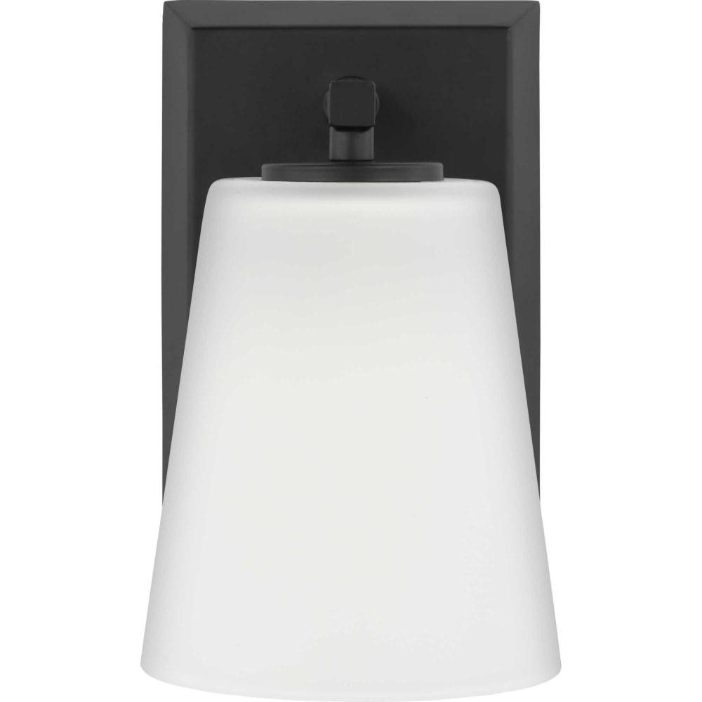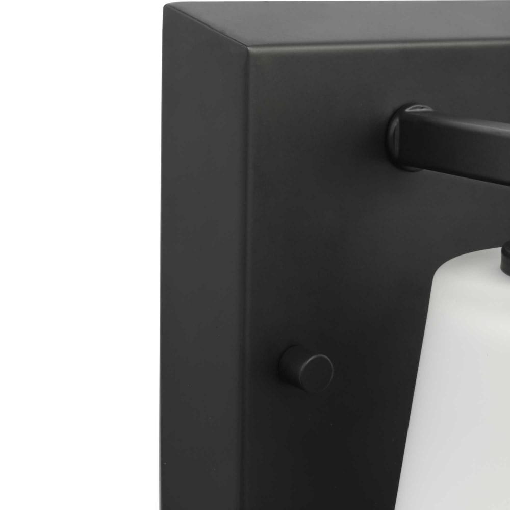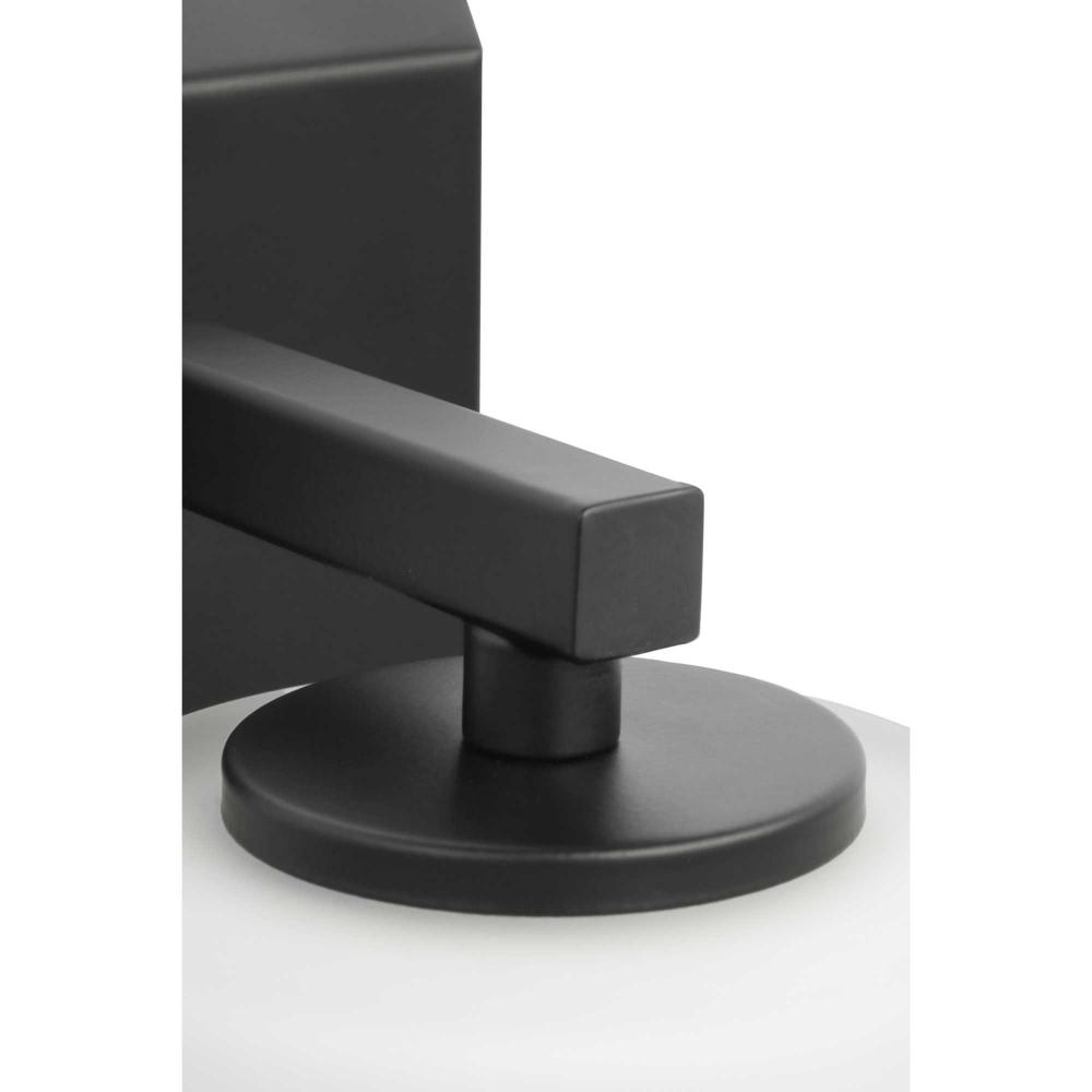 Elegantly extended, the Vertex Collection is composed of angular forms finished in crisp matte black to create a bold design that perfectly complements modern interiors. Glass shades delivers bright illumination to bathrooms and powder rooms in contemporary settings. This versatile fixture can be mounted up or down, increasing its design flexibility. It is cULus damp rated and has a one-year warranty to guarantee your complete satisfaction. Progress Lighting products offer exceptional quality, reliability, and functionality. .