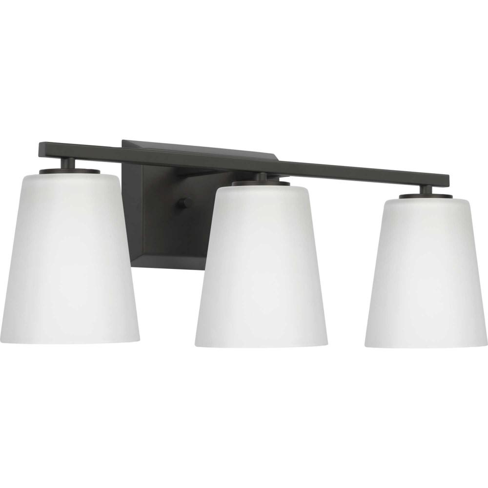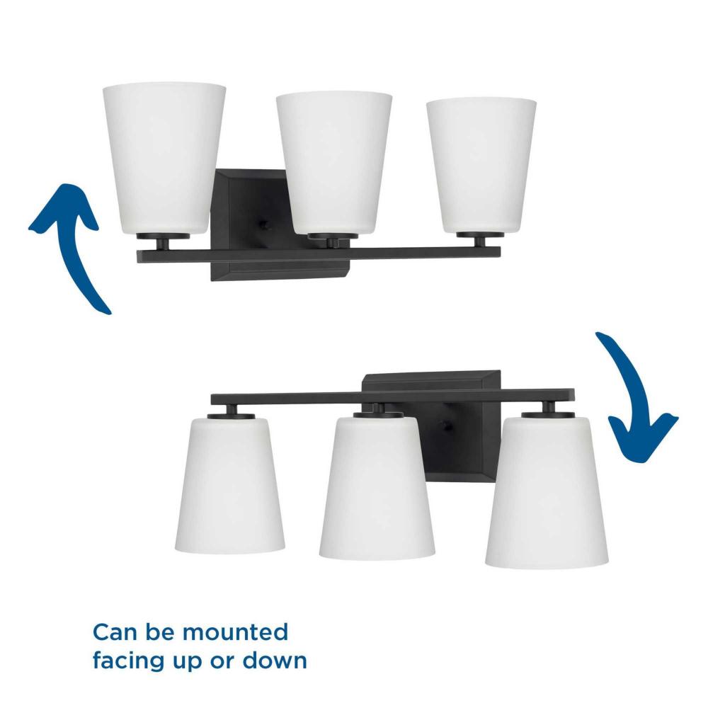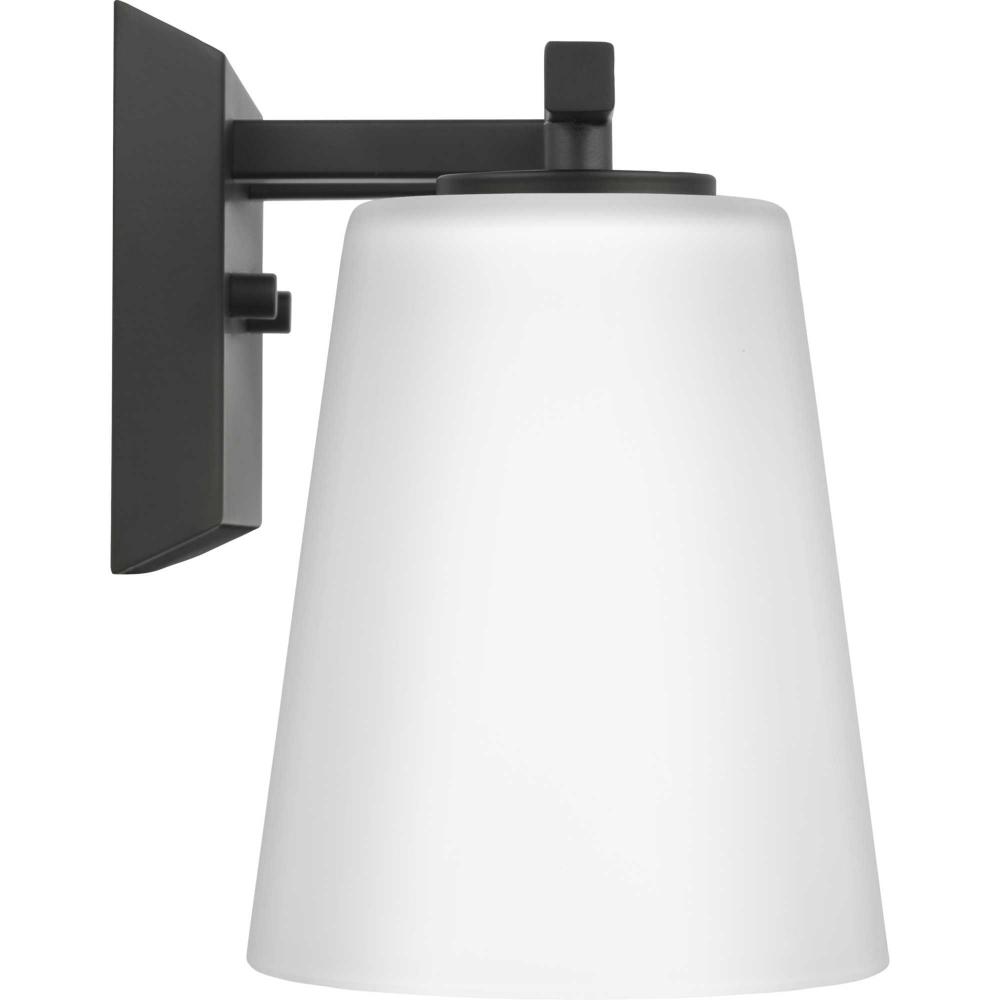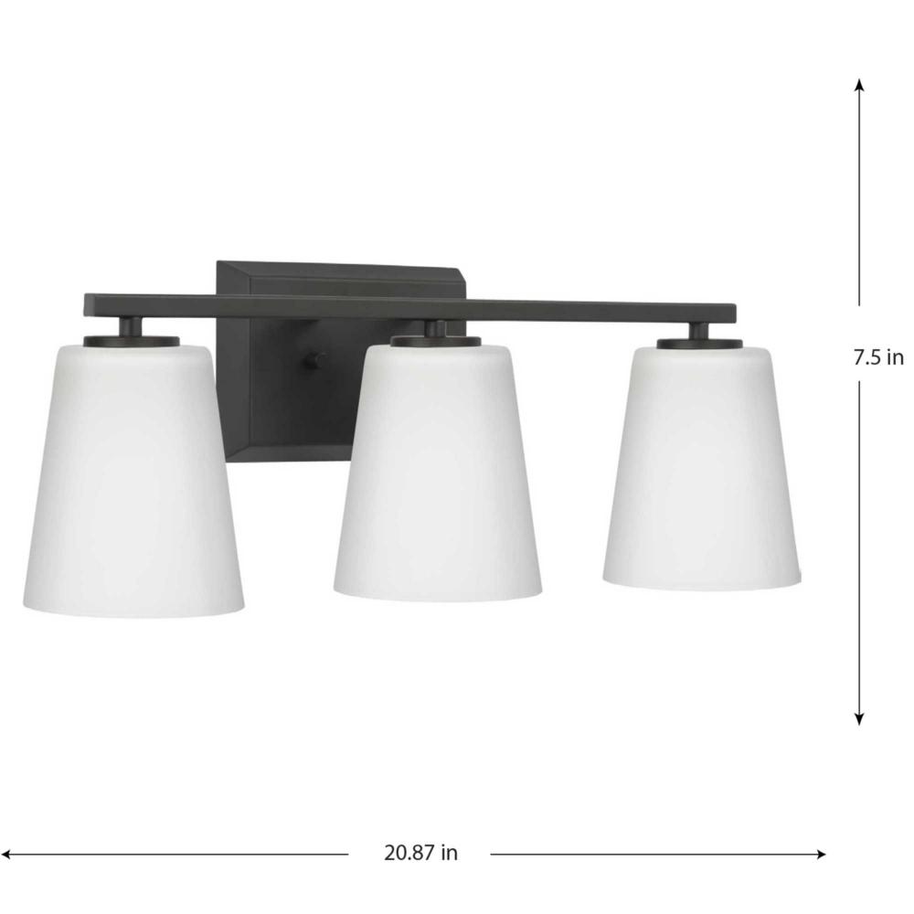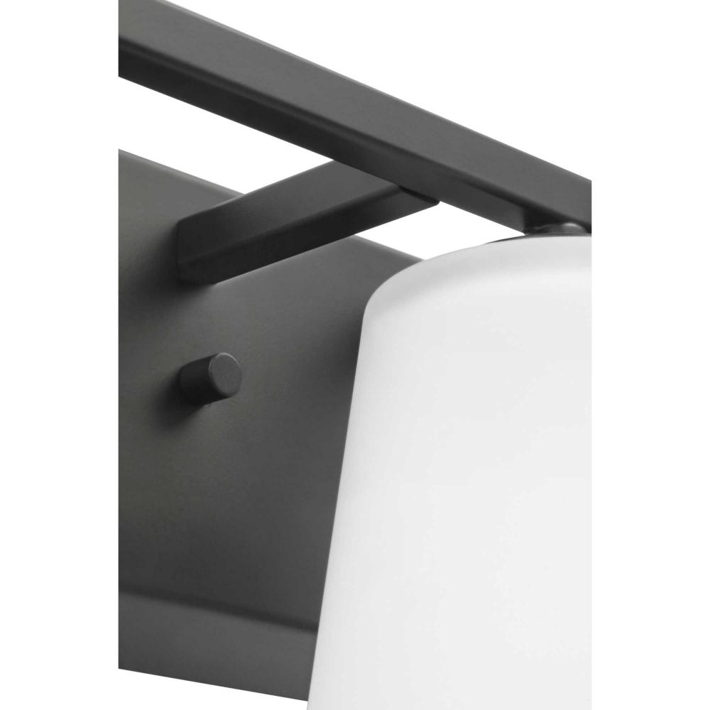 Elegantly extended, the Vertex Collection is composed of angular forms finished in crisp matte black to create a bold design that perfectly complements modern interiors. Glass shades delivers bright illumination to bathrooms and powder rooms in contemporary settings. This versatile fixture can be mounted up or down, increasing its design flexibility. It is cULus damp rated and has a one-year warranty to guarantee your complete satisfaction. Progress Lighting products offer exceptional quality, reliability, and functionality. .