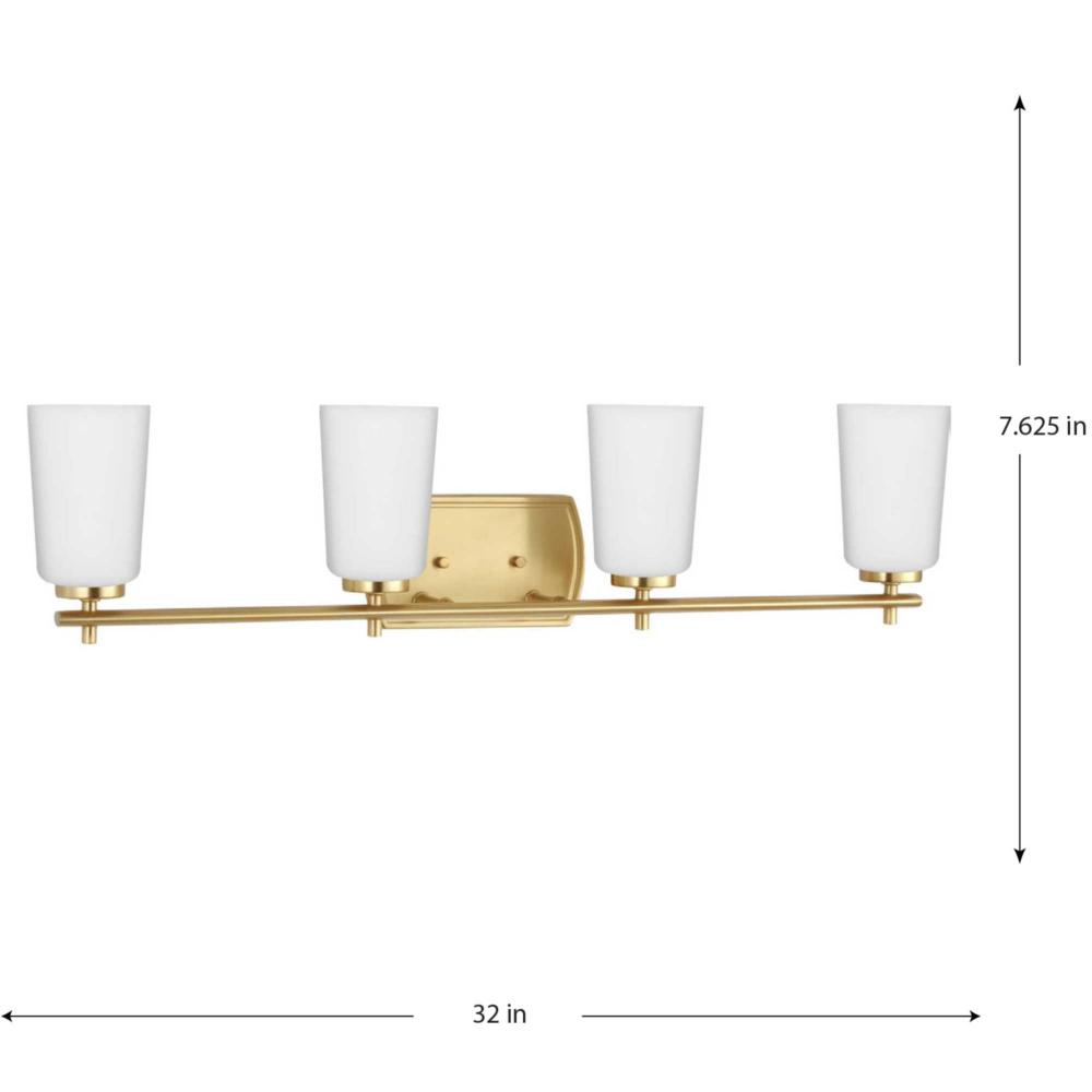 Fundamentally modern but with a traditional twist, the Adley vanity light combines opal glass shades with a curved edge backplate and a simple, straight bar finished in lustrous satin brass. This light is an elegant choice for illuminating new traditional and transitional settings.