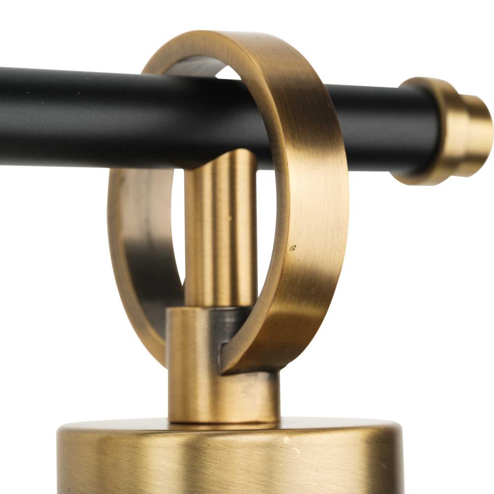 The fixture's vintage brass and matte black accents provide an elegant, detailed look in luxe industrial and contemporary interiors
