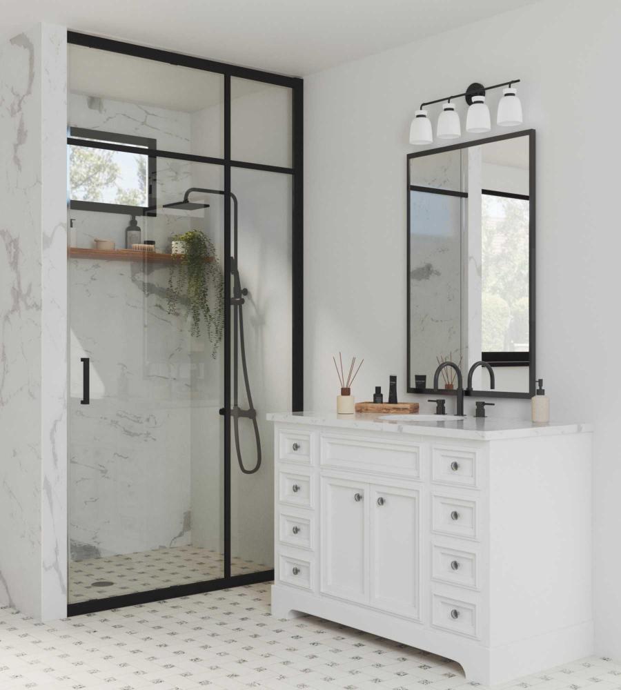 The Lexie Four-Light Vanity Light is full of spunk with a fresh new style for todays home. A slender minimalist frame finished in Matte Black supports opal glass shades with a distinctive cinched metallic collar.The versatile fixture can be mounted facing up or down, offering the perfect amount of illumination to the room.