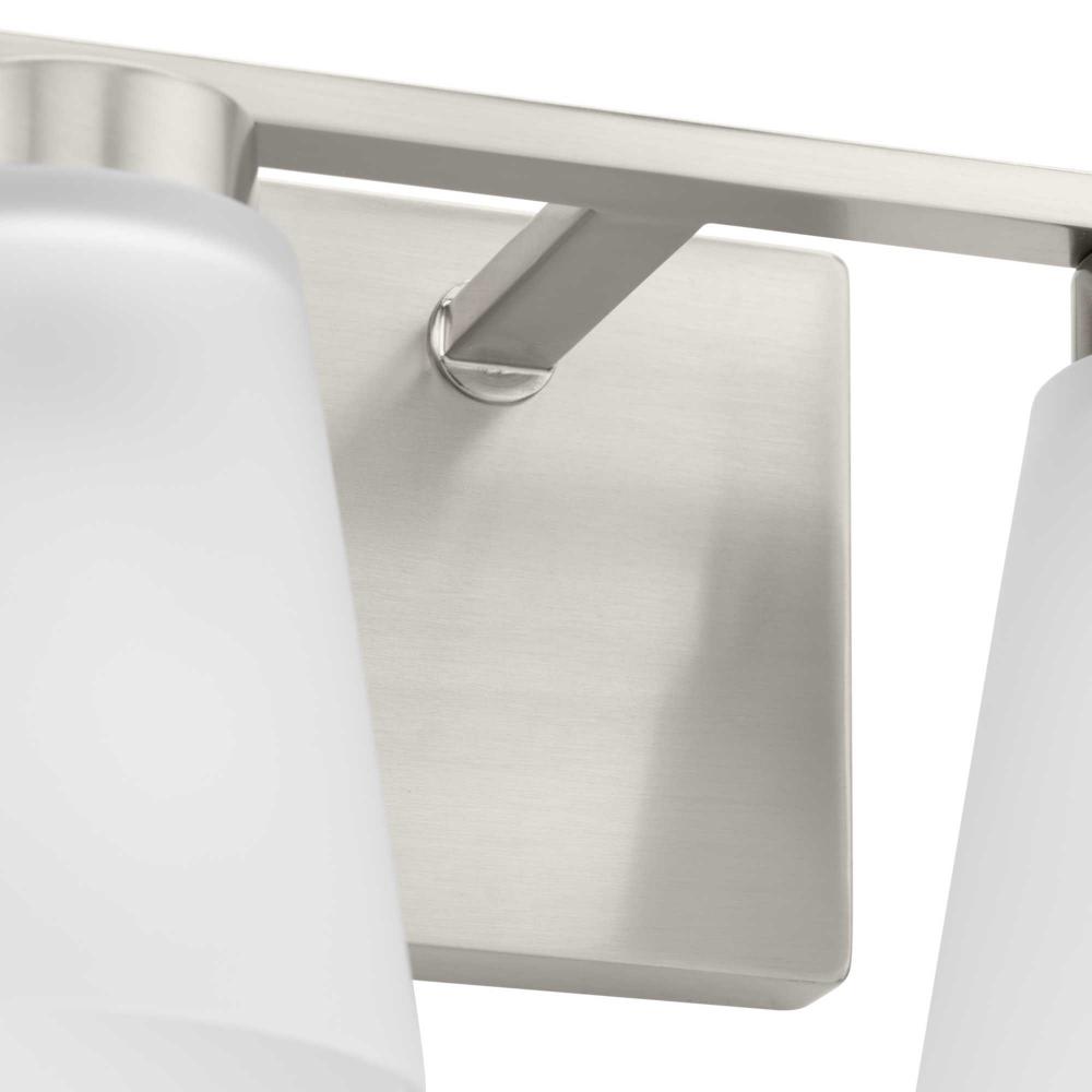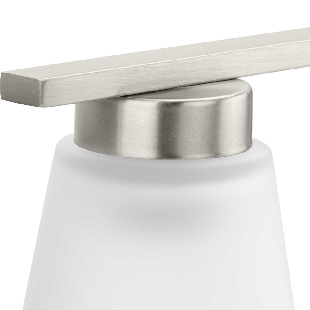 A Brushed Nickel finish emphasizes the fixture's lively design