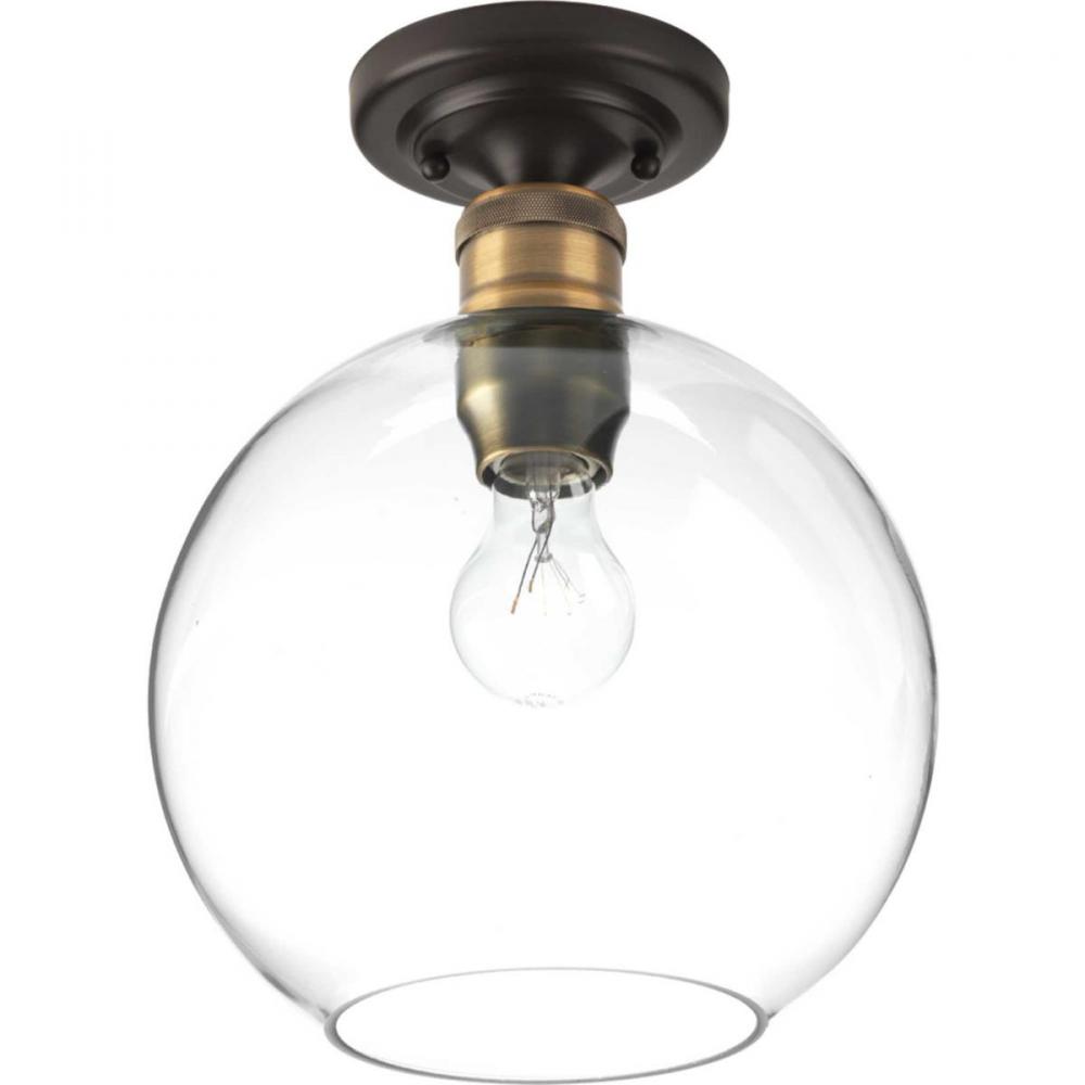The Hansford collection of fixtures feature a clear, spherical shade paired with vintage style metal fittings in an antique bronze and brass combination finish. Featuring a clean and precise design with generous scale, Hansford's classic style brings tranquility to your home with. Hansford lends itself to Farmhouse, Coastal or Industrial interiors. Can be used with clear or vintage bulbs for a variety of looks. The one-light flush mount is ideal for bedrooms, bathrooms, hallways and closets.