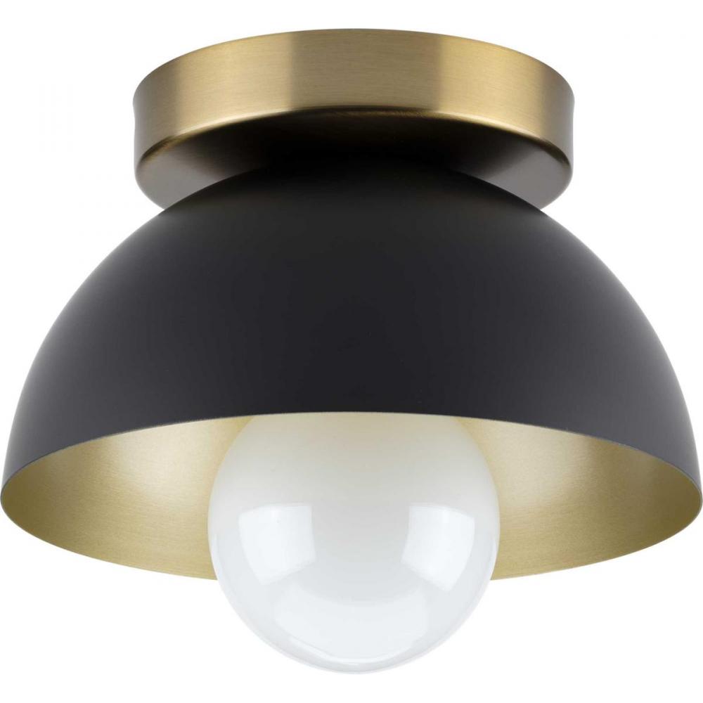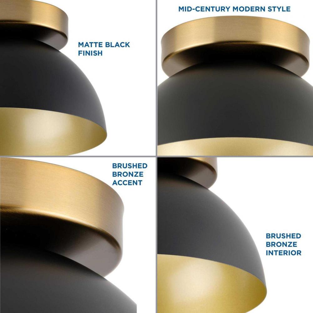 Offer nostalgic charm for today's home with a flush mount from the Eva Collection. A classic matte black shade is complemented by beautiful brushed bronze accents for an eye-catching, two-toned color scheme. Compatible with dimmable bulbs.