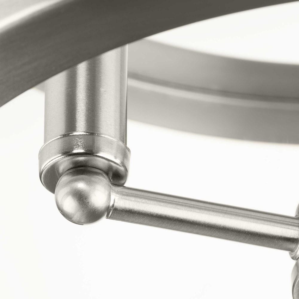 The fixture is coated with a subtle brushed nickel finish, accenting contemporary settings with a classic touch