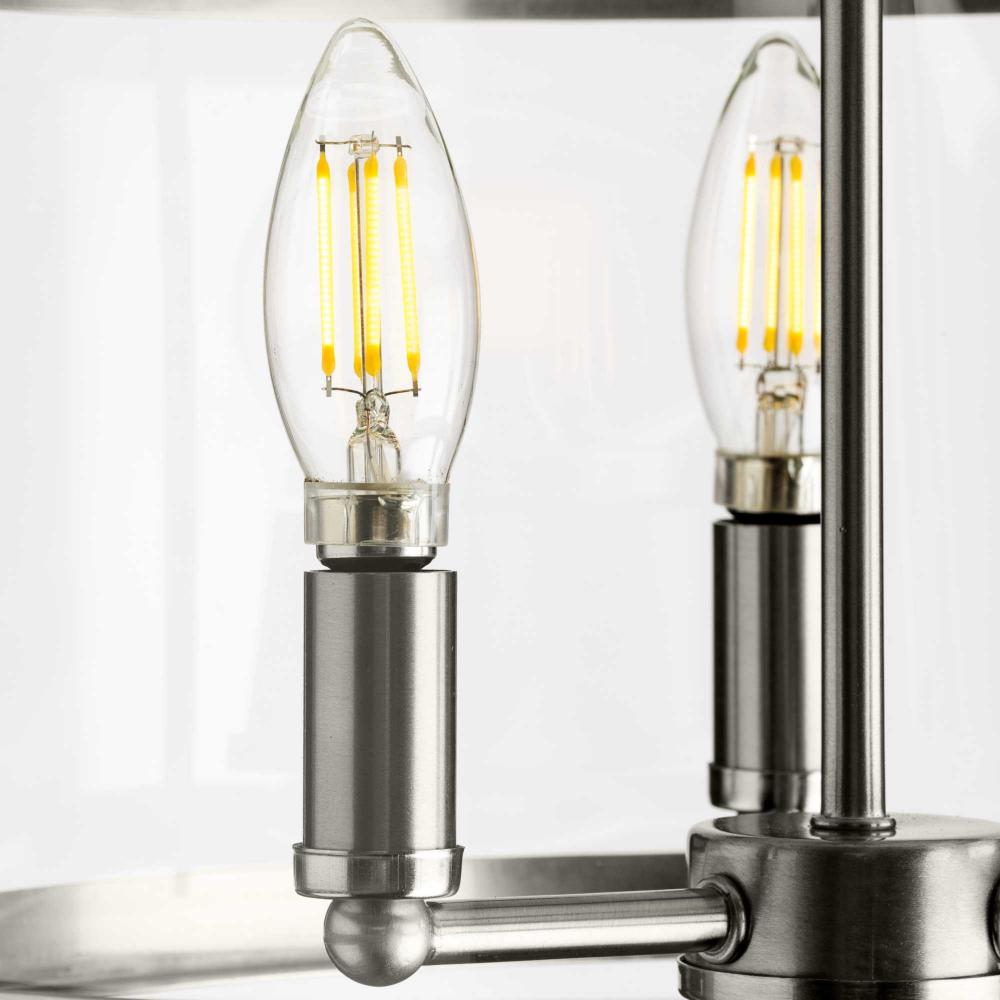 Uses (3) 60-Watt maximum candelabra base bulbs, or LED equivalent, that is sold separately, dimmable when used in conjunction with a dimmable bulb