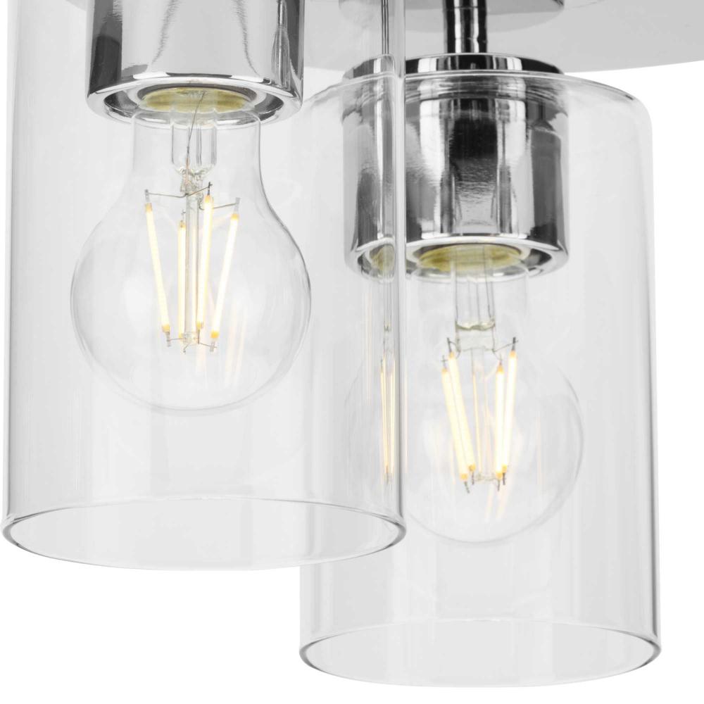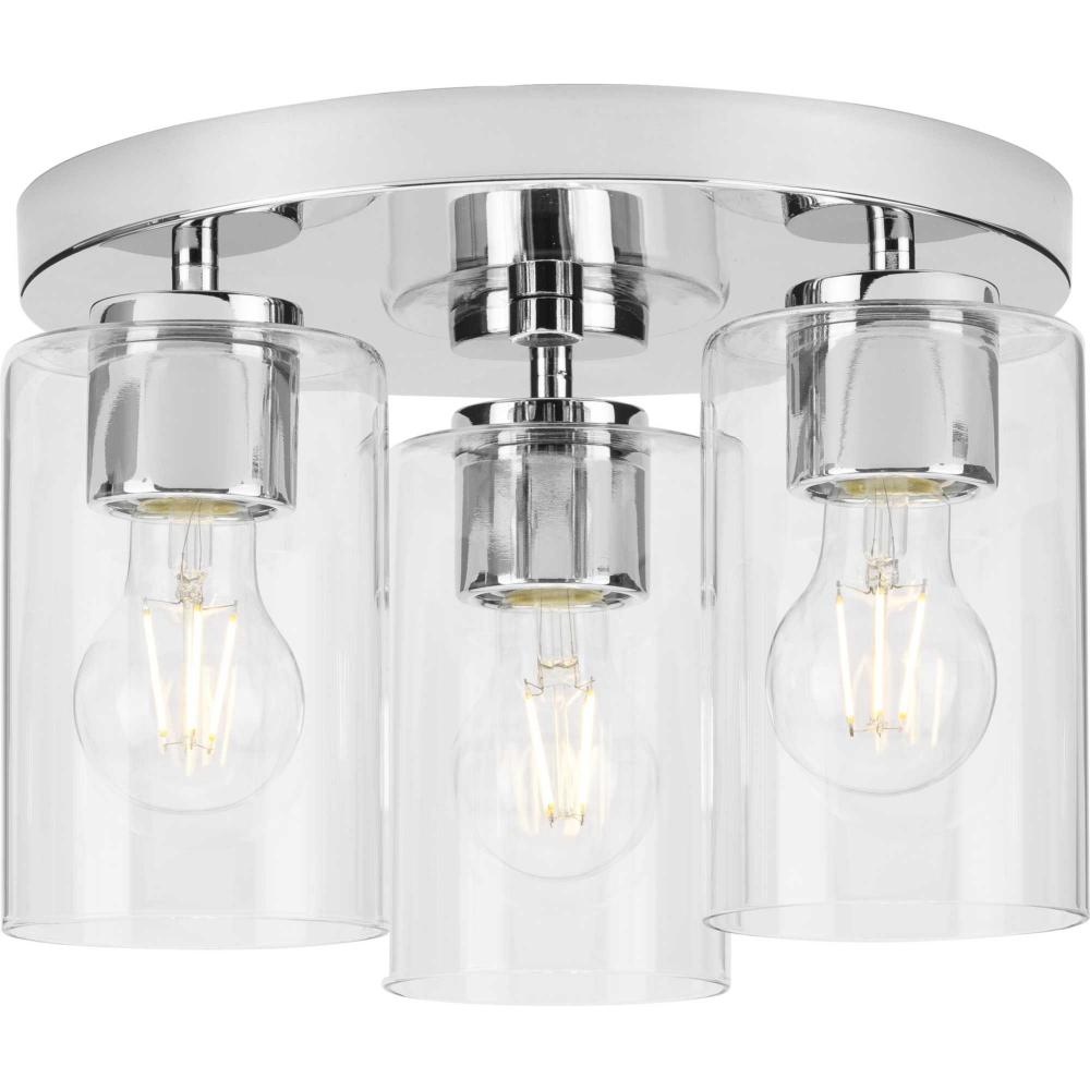The Cofield Flush Mount features a slender, clean design that showcases understated elegance. A simple round canopy suspends cylindrical glass shades, providing contemporary style to mid-century modern and transitional settings, delivering ambient illumination to hallways, foyers, bedrooms and laundry rooms.