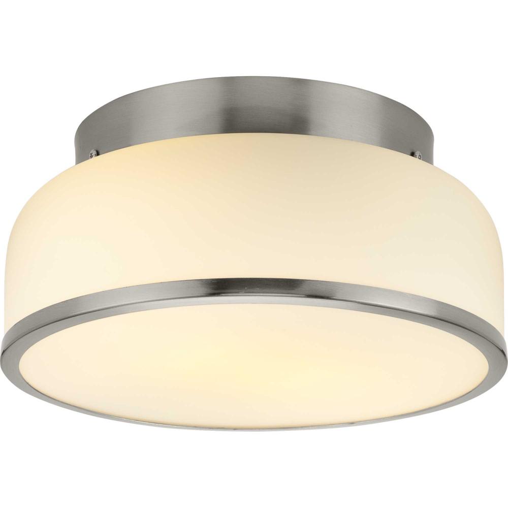 The flush mount features a subtle brushed nickel finish