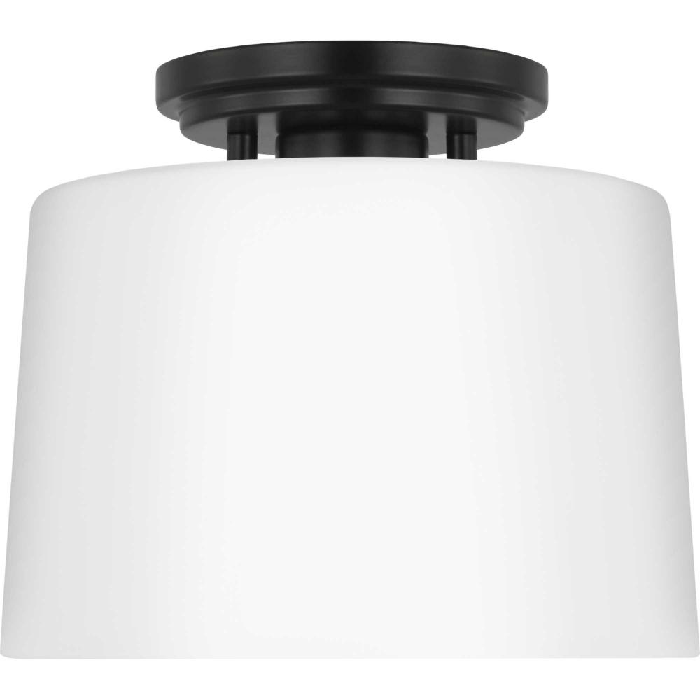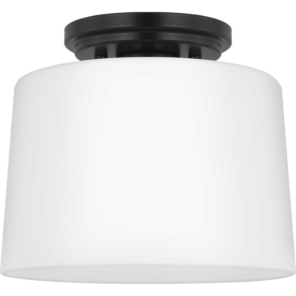 Fundamentally modern but with a traditional twist, the Adley flush mount light features a sleek light base and circular ceiling plate coated in a contemporary matte black finish. The light source is surrounded by an etched opal glass shade for gorgeous illumination. This ceiling light will find a home in any new traditional or transitional style setting.