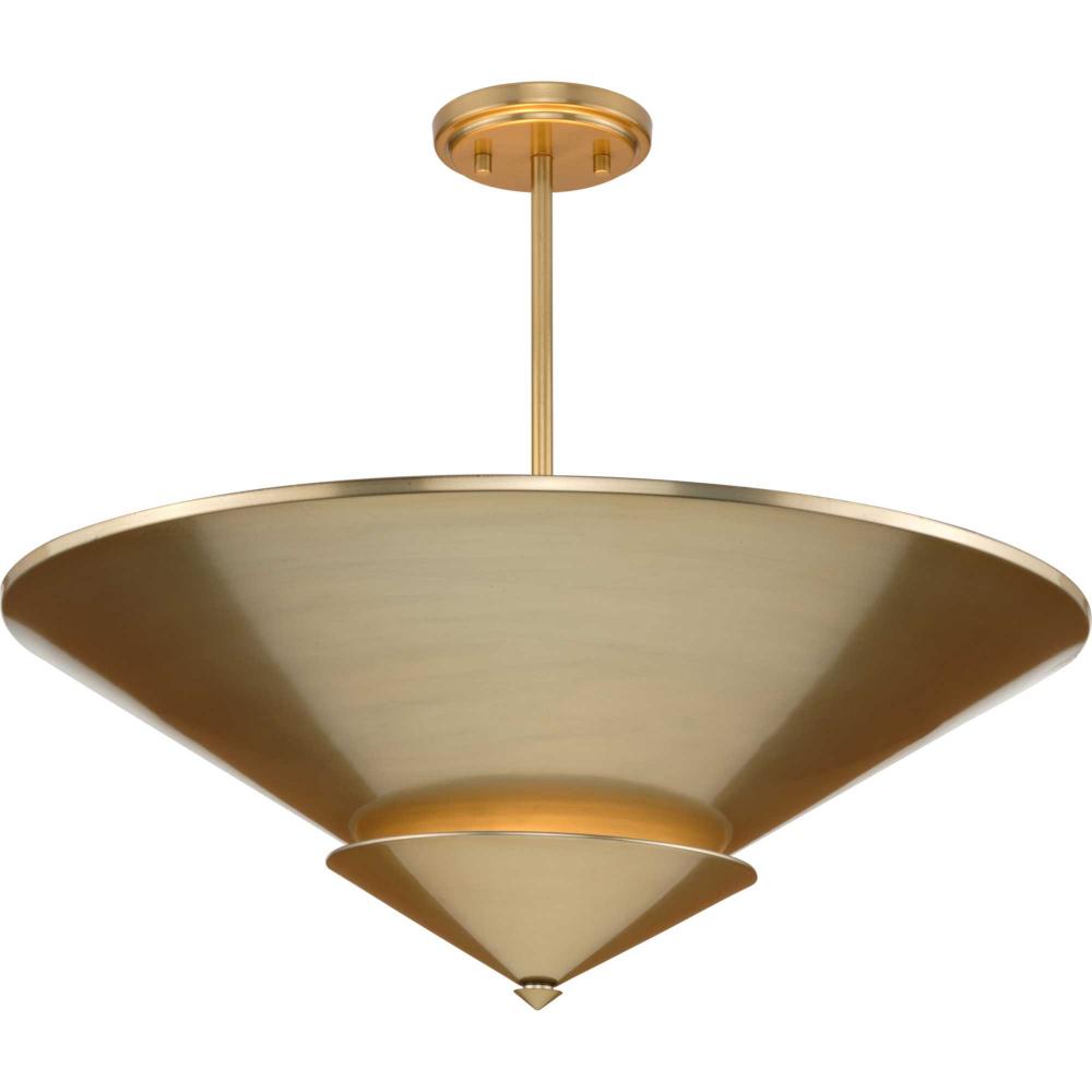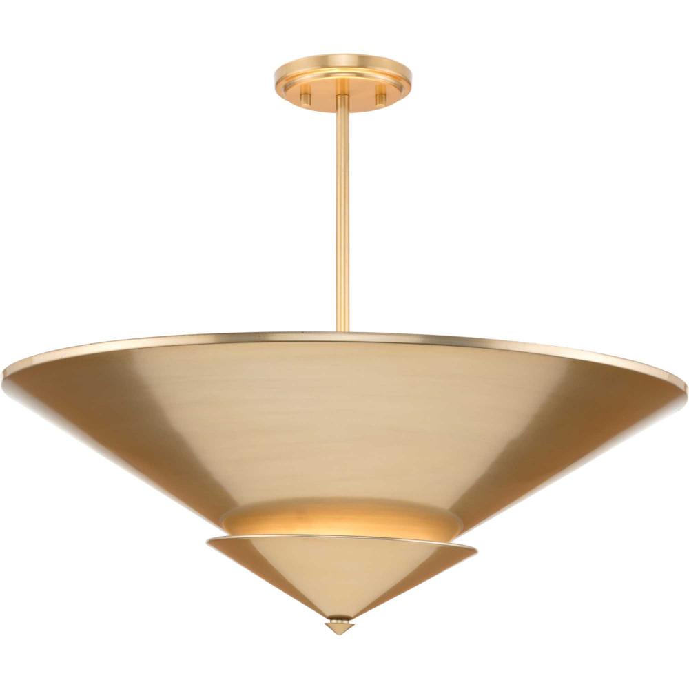 A soft gold finish emphasizes the light's conical design
