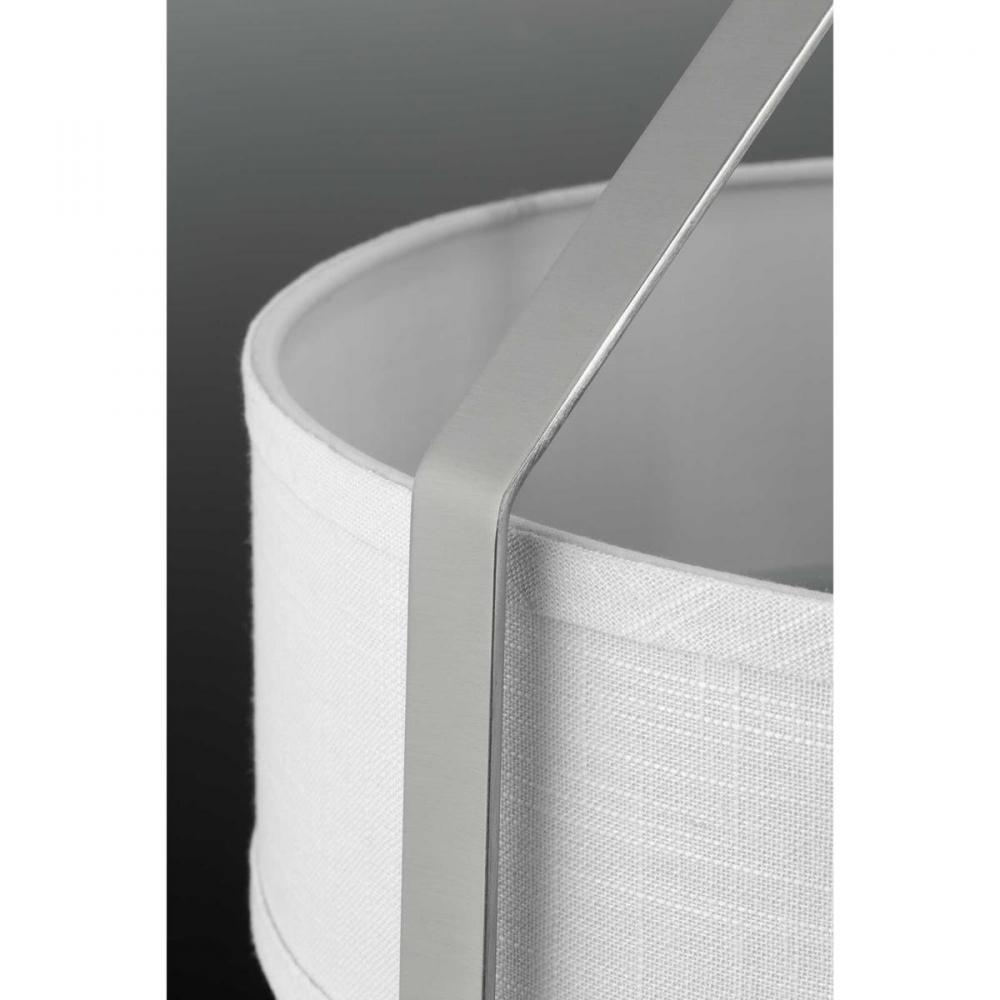 A sleek metal frame supports a low-slung shade.;The frame's proportion to the white linen drum shade evokes a perfect ratio for lighting.;Polished glass diffuser that offers an elegant appeal and is easier to clean.;Offers both fashion and function wit