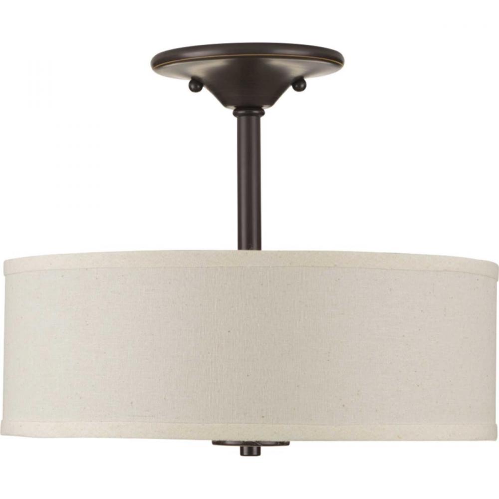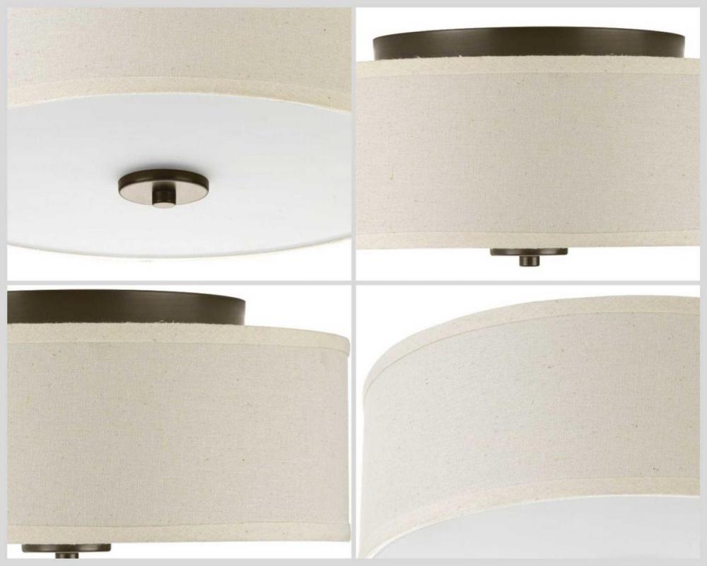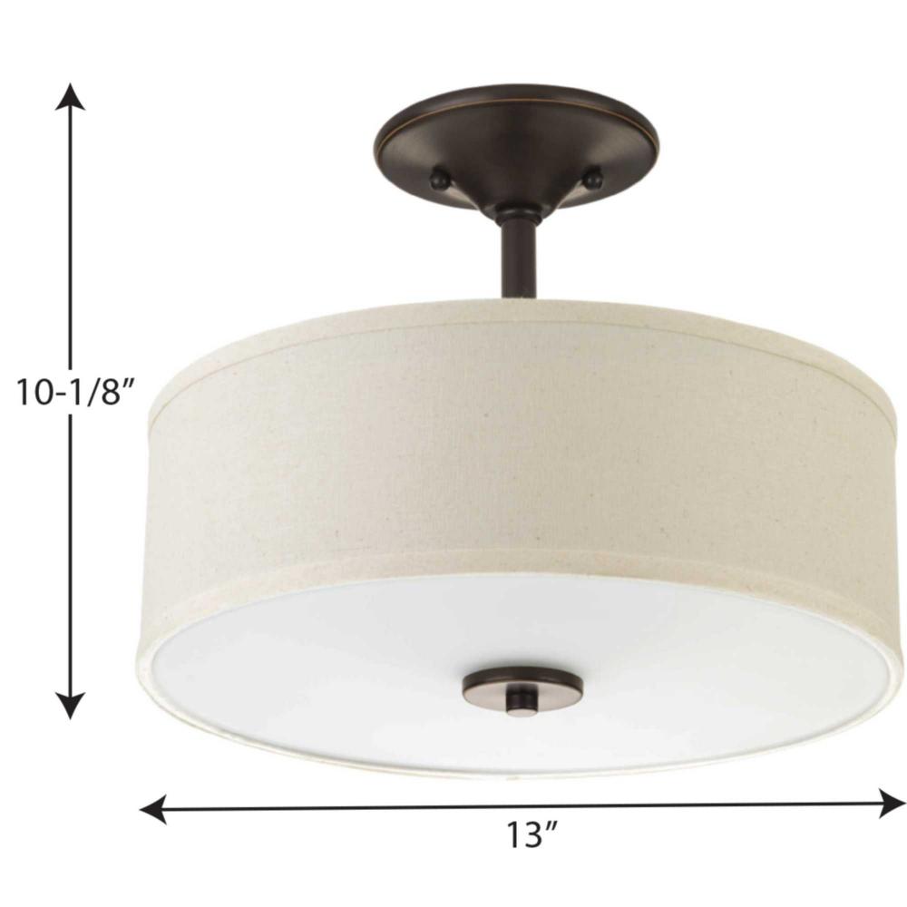 Harkening back to a simpler time, the Inspire Collection semi-flush mount ceiling light freshens traditional forms with clean lines. The two-light antique bronze semi-flush mount features an etched glass diffuser with an off-white linen shade. This fixture is suitable for a variety of design styles, including transitional, traditional and farmhouse and the simple design is a perfect for a variety of locations throughout the home.