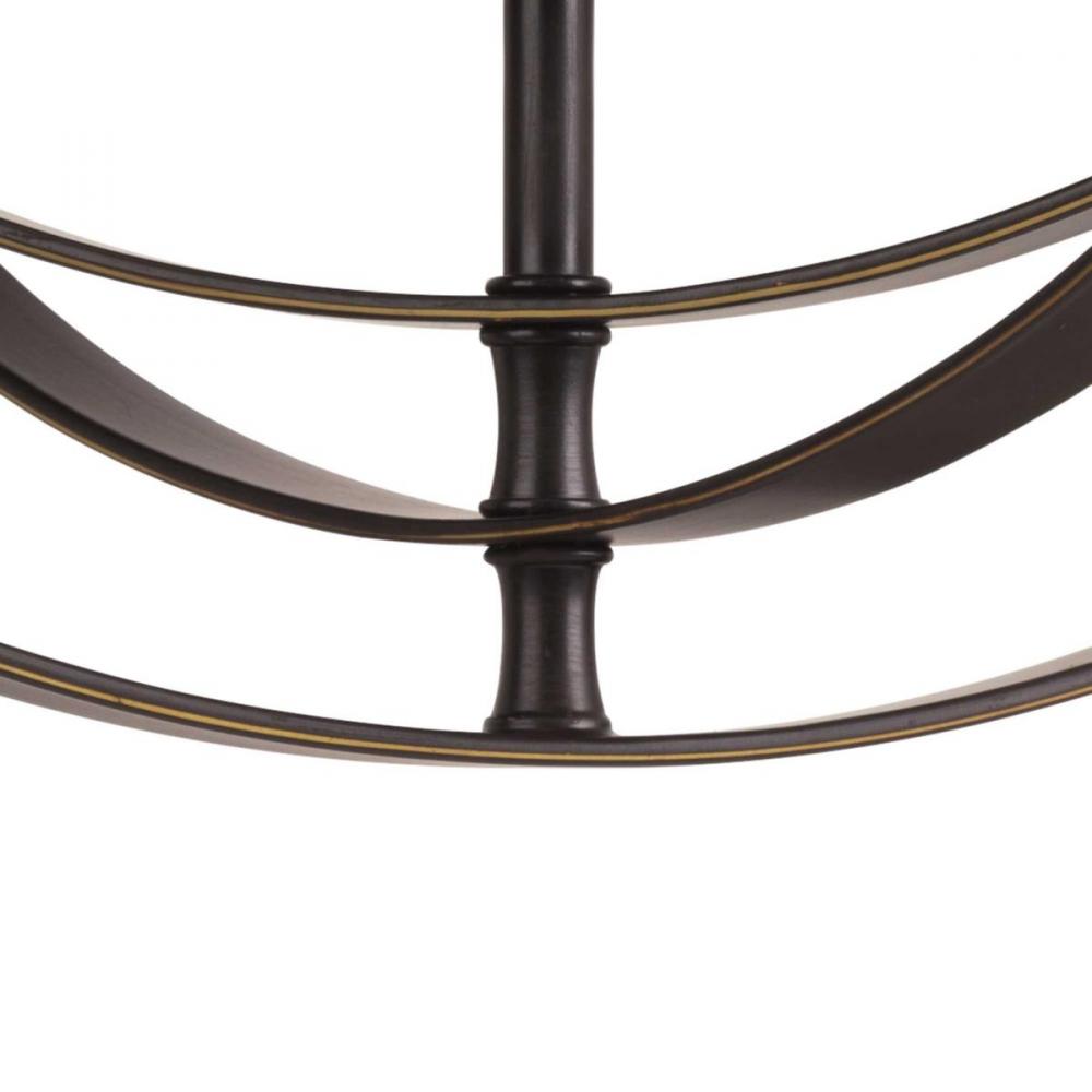 Inspired by ancient astronomy armillary spheres. This oversized oval fixture is part of the stunning Equinox collection. Interlocking rings pivot for an infinite variety of positions. Four-light foyer pendant in a Antique Bronze finish is ideal for linear installations over a farmhouse table, dining room setting or kitchen island.