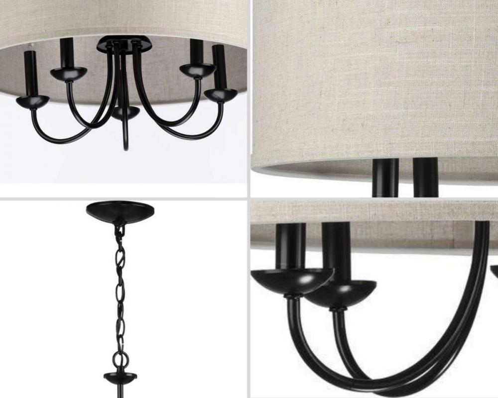Perfect for over a dining table, entryway, or breakfast nook for a quiet, elegant look;The updated classic styling is deal for farmhouse and transitional settings;Five-light chandelier with finely formed arms curving upward to clasp the textured linen shad