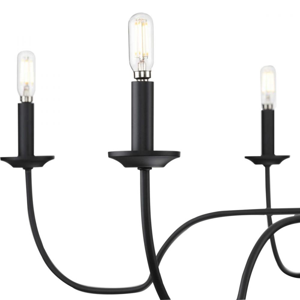 Create an elegant focal point for any room with a chandelier from the Canebrake Collection. The traditional silhouette features flowing curved arms for an artisanal flair. A classic matte black finish completes the design. Compatible with dimmable bulbs.