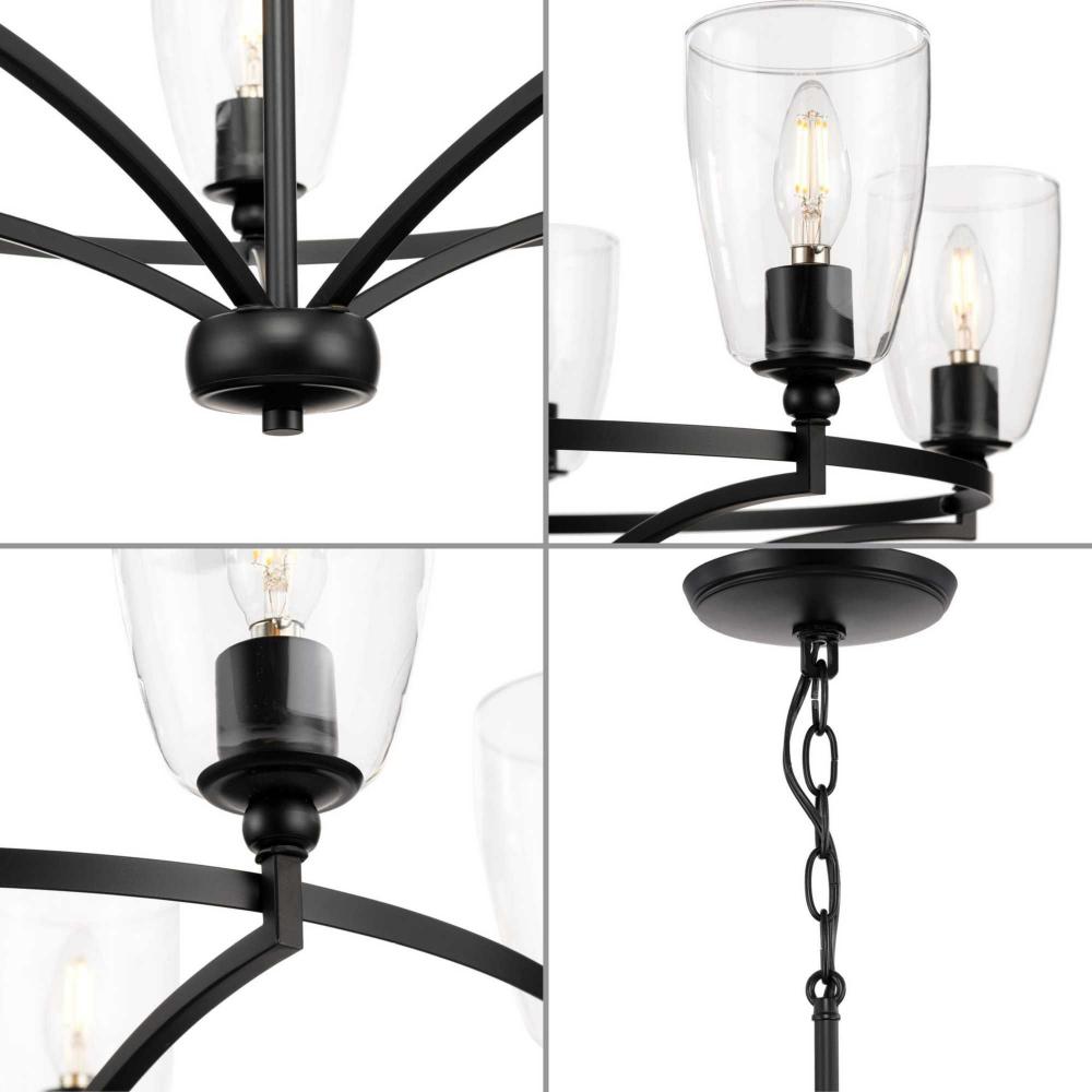 Parkhurst has an airy, elegant style that works well in dining rooms, bedrooms and kitchens to provide ambient light;This elegant chandelier is ideal for new traditional, modern farmhouse, and transitional interiors.;Coated with a classic matte black finis