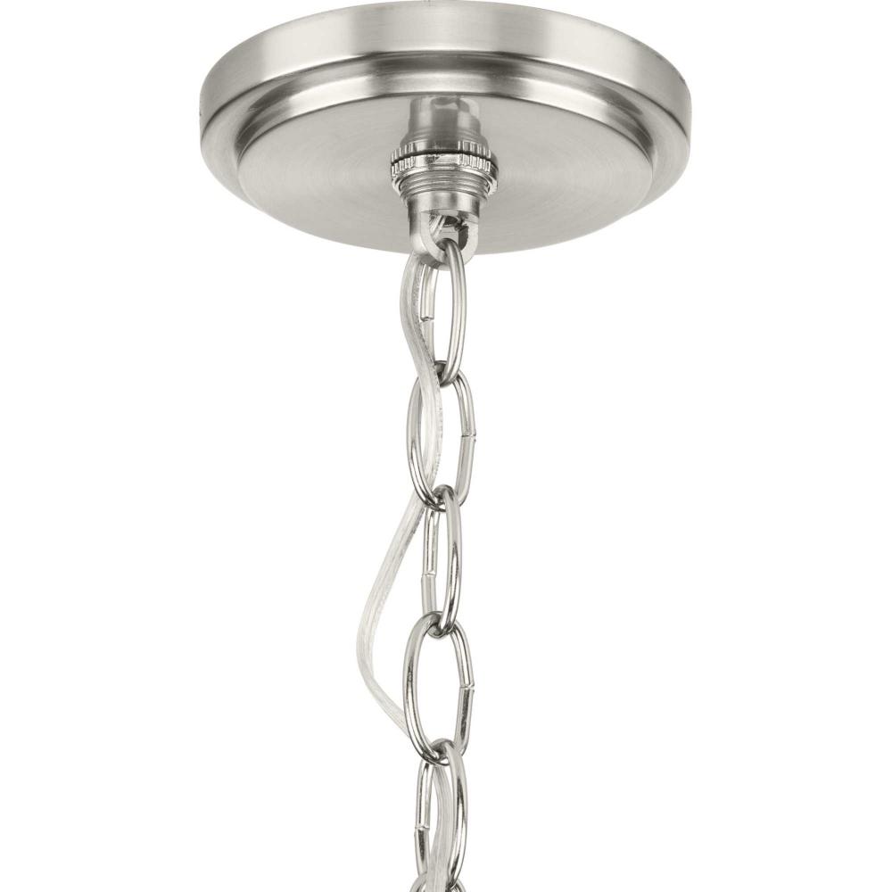 The fixture is coated with a subtle brushed nickel finish, accenting contemporary settings with a classic touch
