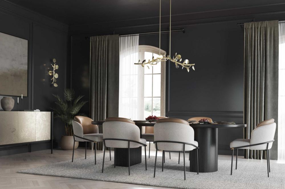 Natural, whimsical leaves and sophisticated lines fits beautifully in transitional, luxe, and modern organic rooms
