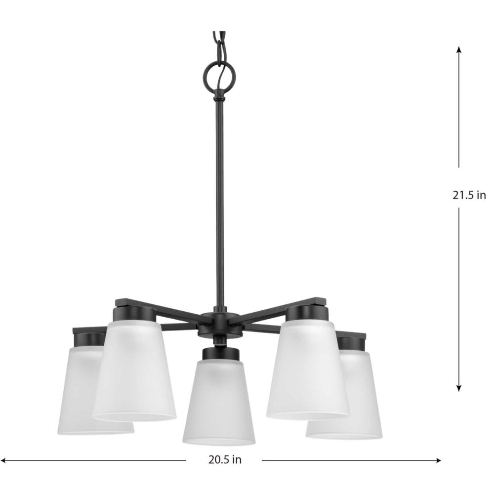 Fill your house with the lively Tanner family of fixtures. Strong lines accent the Matte Black frame in a simple balance of form and function, while soft etched glass shades complement the design. The hanging height is easily customized for your space with the included chain.
