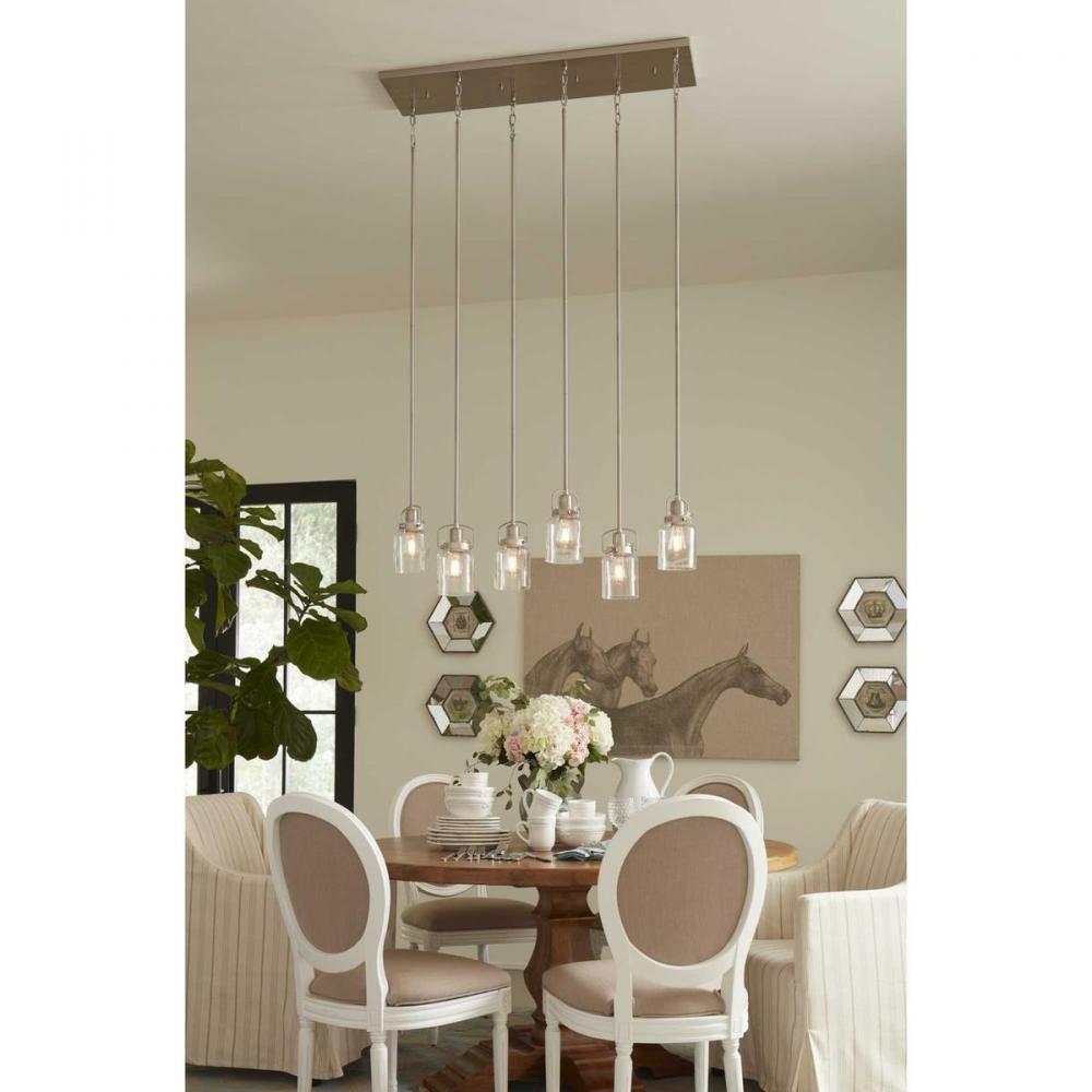 Features an apothecary style, clear glass diffuser held in place with a mechanical latch from a spice container;The glass shade features a thickened profile to create a vintage-style surface for a classic handmade appearance.;Brushed Nickel finish.