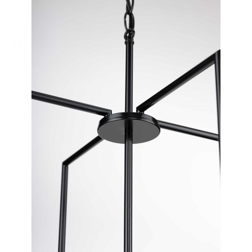Perfect for making a statement by hanging in multiples in a foyer or over a large kitchen island or dining table;Clean, simple design is ideal for both transitional and modern interiors;Four-light pendant with a rectangular silhouette extending above and b