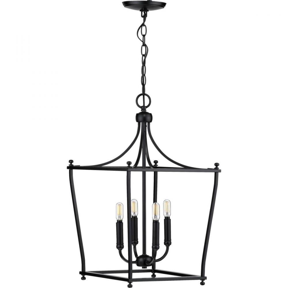 An open-cage metal frame creates a sophisticated, airy structure.;A beautiful black finish coats the lantern-style frame for an eye-pleasing, handsome design.;Inside the frame perch smooth, simple light bases ready to offer your home a lovely glow.;Ideal f