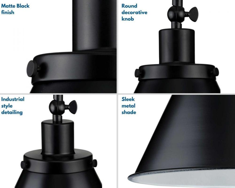 Enjoy focused task lighting with the Hinton Collection 1-Light Matte Black Industrial Pendant Light. A light source glows from within the hanging light's signature metal shade that fosters the design's industrial aesthetic. The vintage metal shade is coated in a sleek matte black finish for modern industrial character.