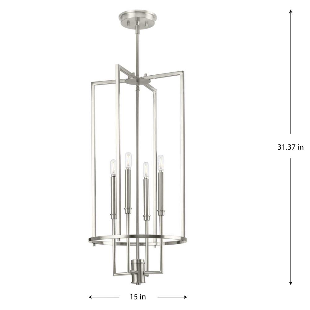The Elara foyer light features a slender, chic form captured in an elongated frame, making it ideal for foyers, great rooms and kitchens;Its classically modern style is perfect for new traditional and transitional interiors;A beautiful brushed nickel fin
