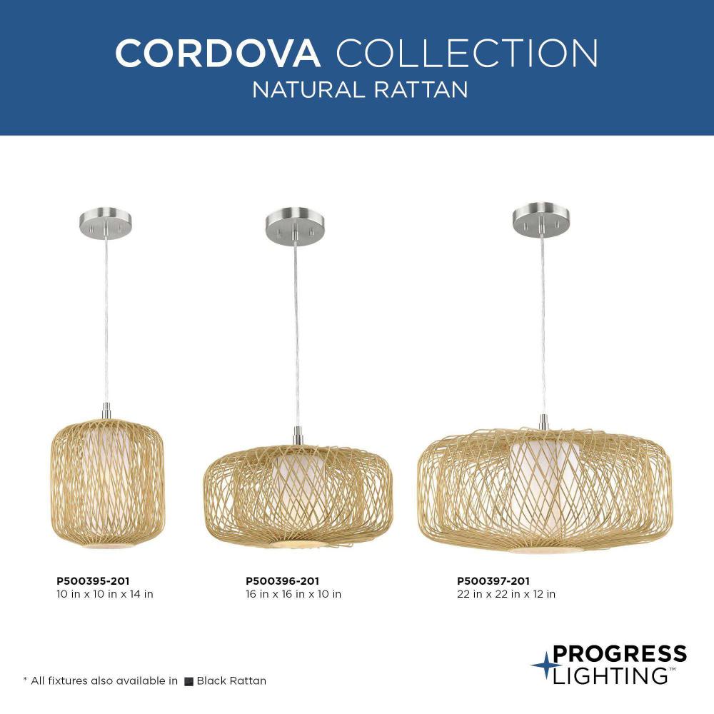 Modern organic style fuses with artisanal craftsmanship in the Cordova Collection. Inspired by the graceful interlacing of a bird's nest, its airy handwoven natural rattan frame surrounds a textured fabric, white linen diffuser. Use this airy pendant as light sources on either side of a bed, or install singly or in multiples in bedrooms, over dining room tables or kitchen islands in global or organic modern interiors.
