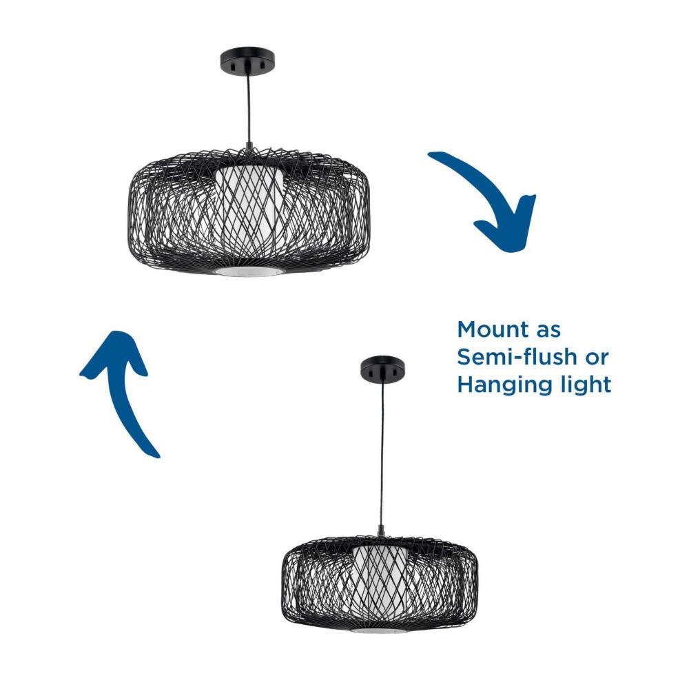Modern organic style fuses with artisanal craftsmanship in the Cordova Collection. Inspired by the graceful interlacing of a bird's nest, its airy handwoven black rattan frame surrounds a textured fabric, white linen diffuser. Use this airy pendant as light sources on either side of a bed, or install singly or in multiples in bedrooms, over dining room tables or kitchen islands in global or organic modern interiors.