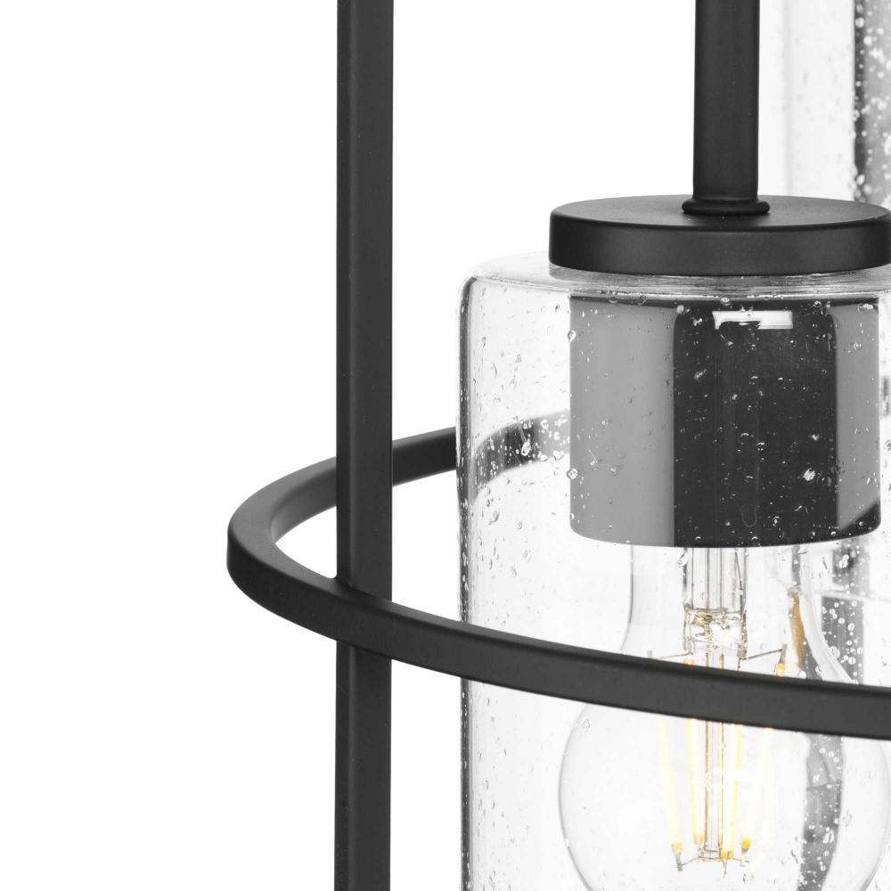 The fixture is coated with a soft matte black finish, enhancing its rustic design