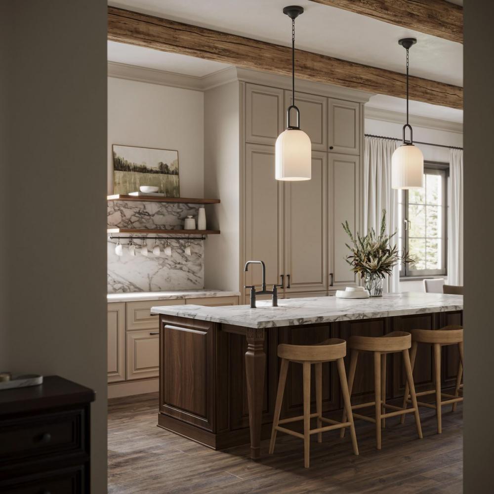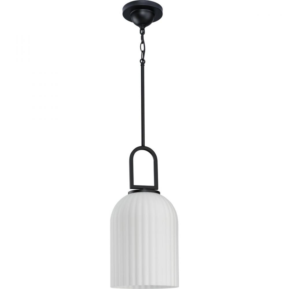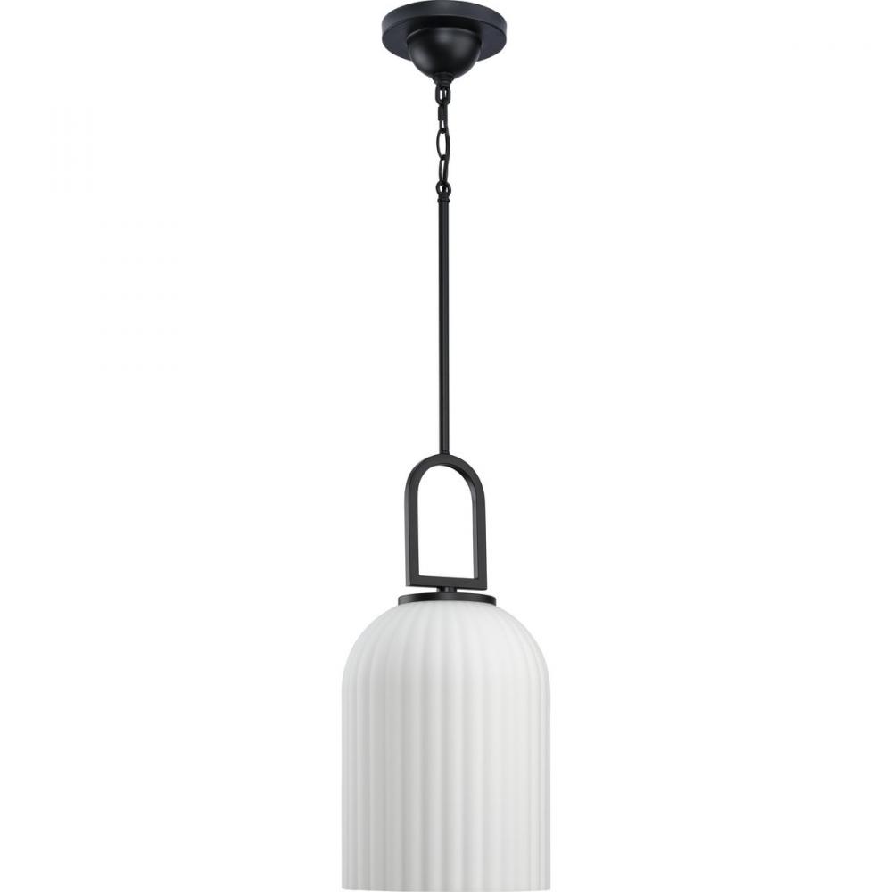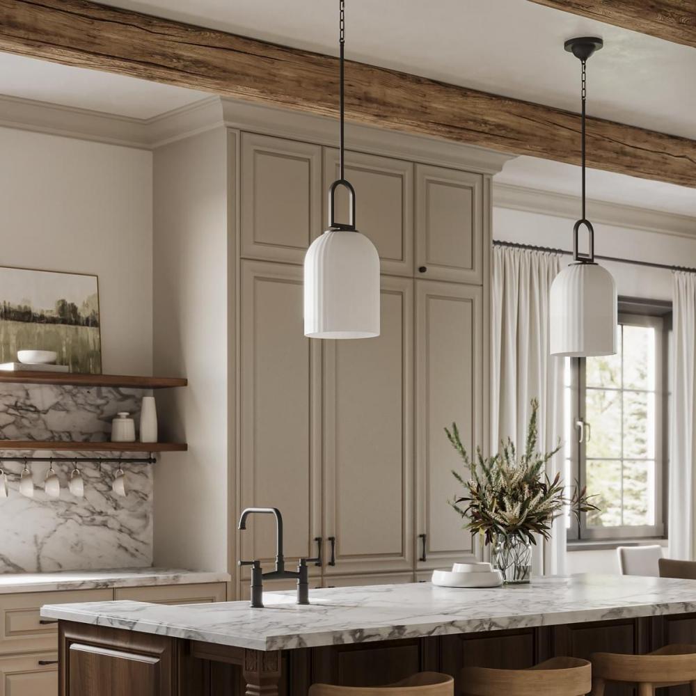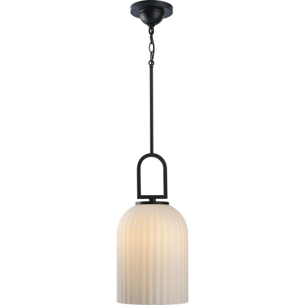 The Stanza Pendant Light merges timeless design with architectural finesse, showcasing a beautifully fluted glass shade with a softly rounded top that evokes vintage charm. Its distinctive arched metal loop, elegantly attached to a streamlined stem and fin