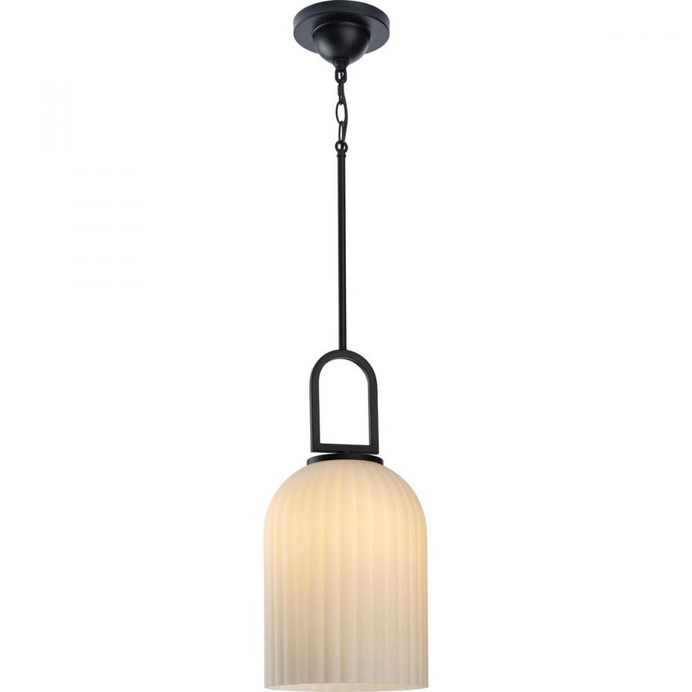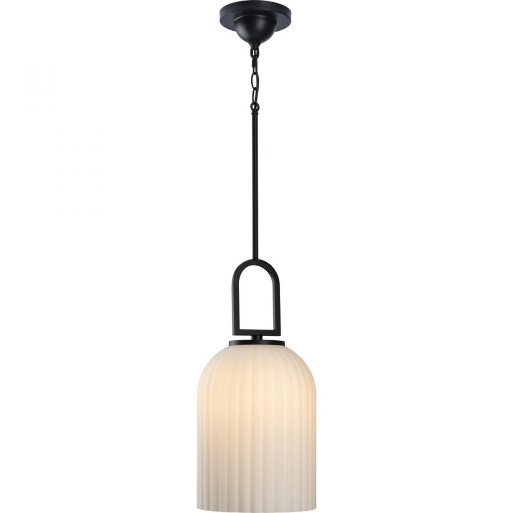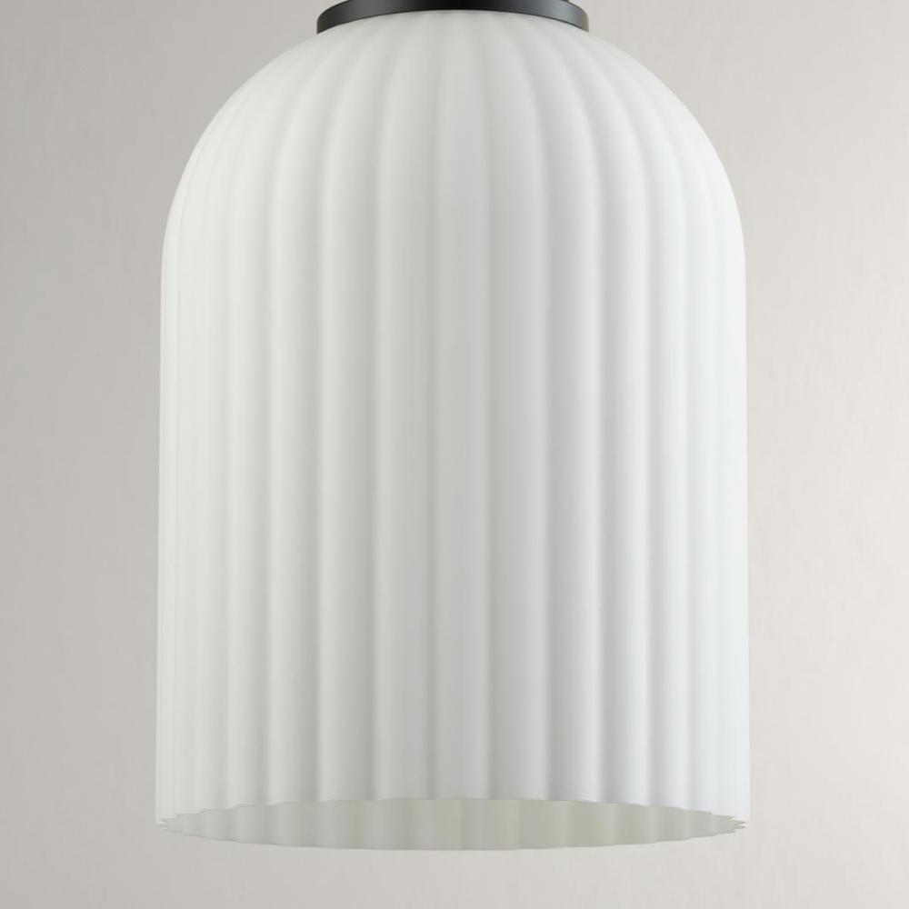 An etched opal ribbed glass shade casts a soft, inviting glow