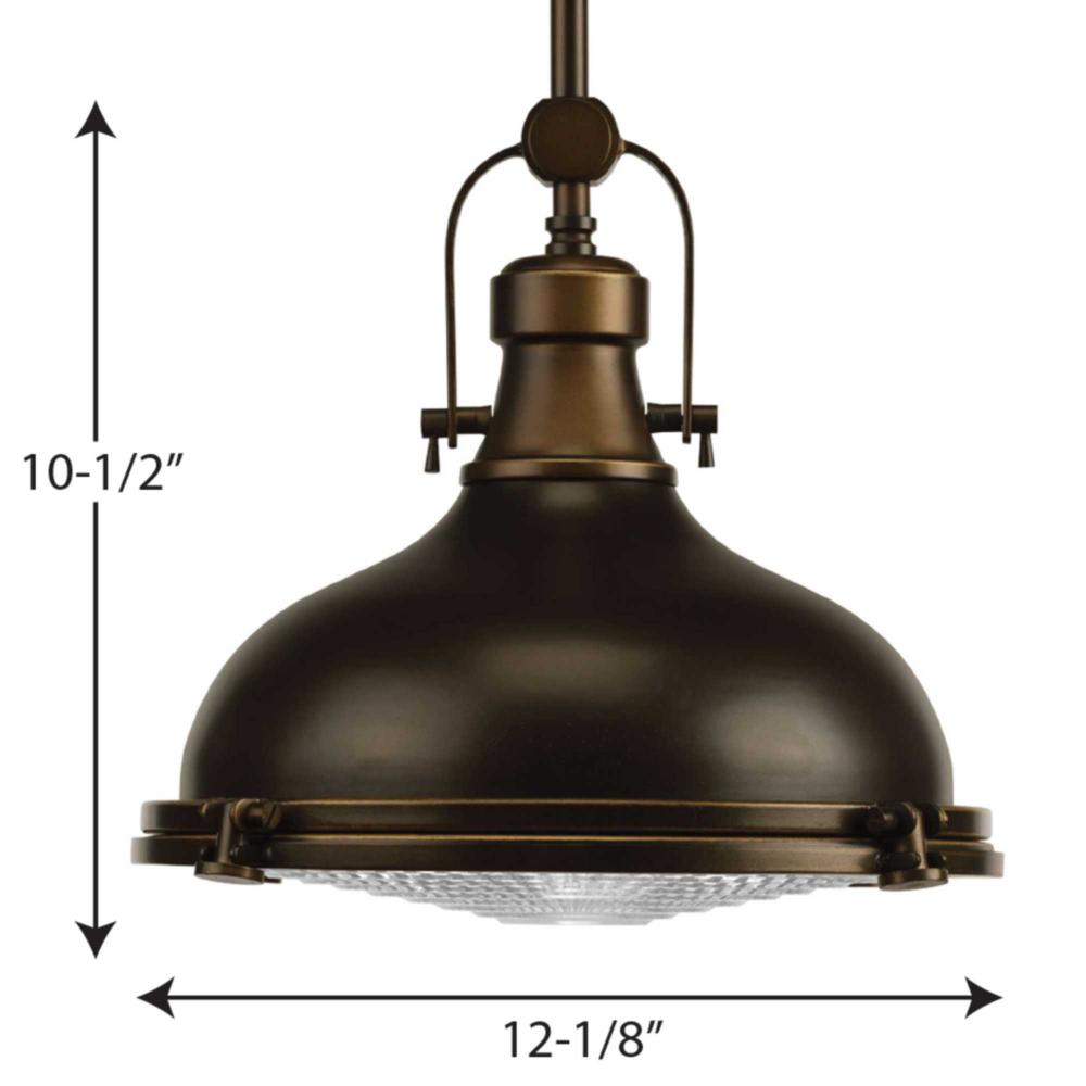 The one-light 12" pendant features industrial roots in both form and function. The Oil Rubbed Bronze finish highlight the high-quality prismatic glass which adds to the historical aesthetic. Antique style fixture includes a hinge-locking nautical design. Perfect above a kitchen island in pairs or threes, use for additional ambience or task lighting in, breakfast nooks, islands, offices, and dining rooms or anywhere a pendant light can be placed. 3000k, 90+ CRI 1,211 lumens 71.2 lumens/watt per module (source).
