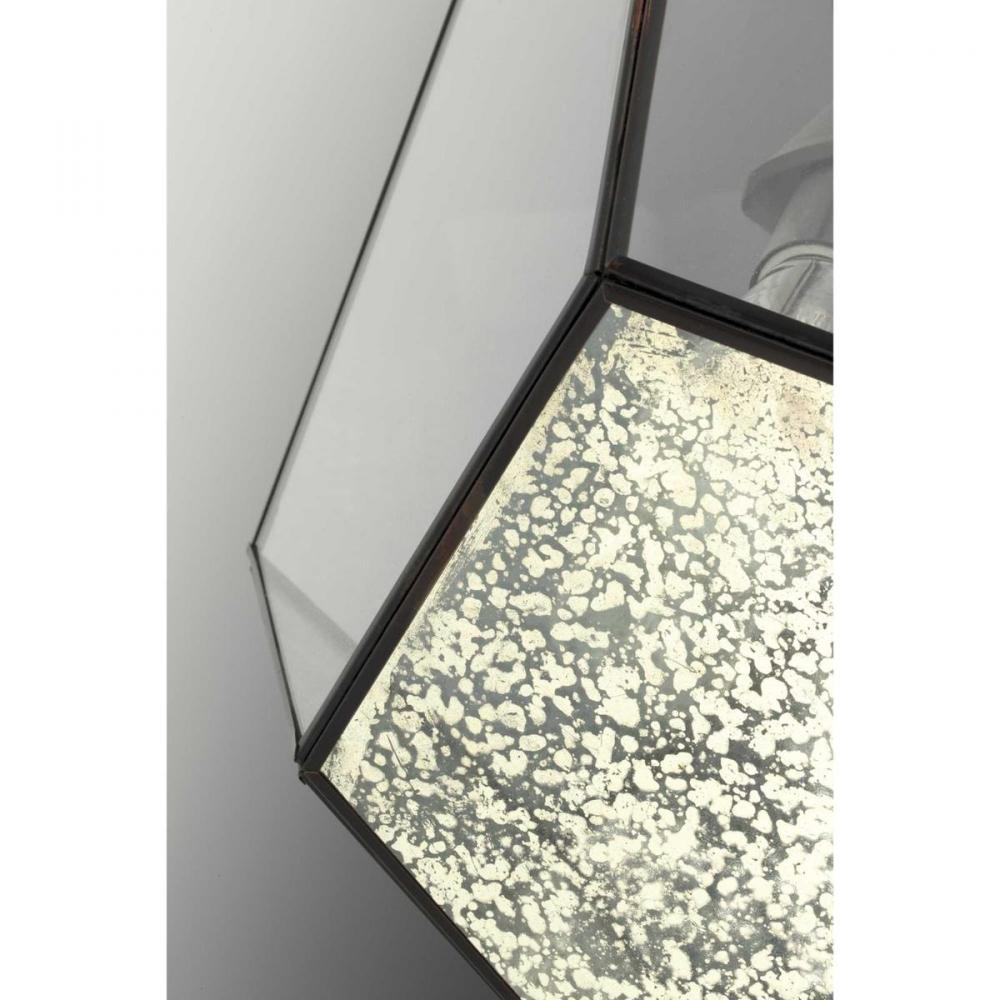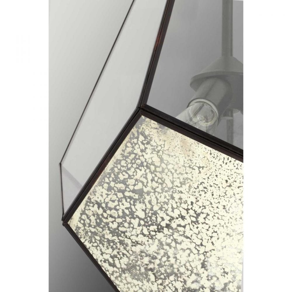 Antique Bronze finish.;Inspired by modern geometric designs.;Five-sided bottom panels display antique mirrored glass.;Upper panels made of clear glass.;Includes one 6", four 12" stems and 6 links of chain.
