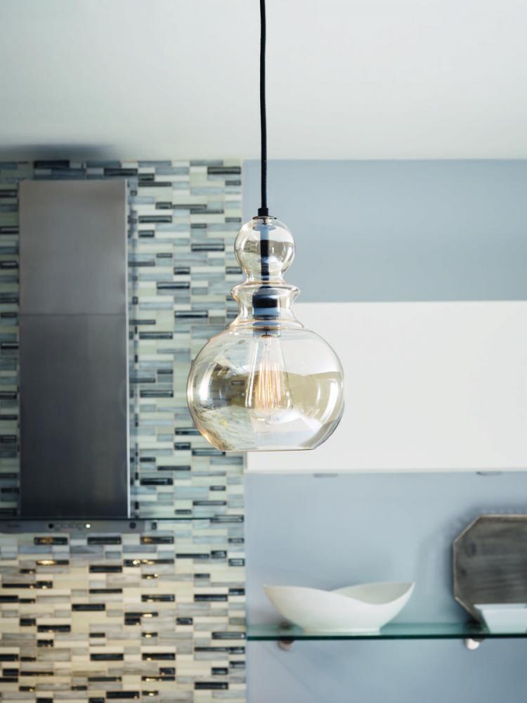 Inspired by the stacked modern elements of items found in Parisian boutiques, Staunton's chess piece globe silhouette offers a signature focal point. A hint of the Antique Bronze finish peeks through the clear champagne glass. The multiple shapes and glass options offers the ability to mix and match for customized look.