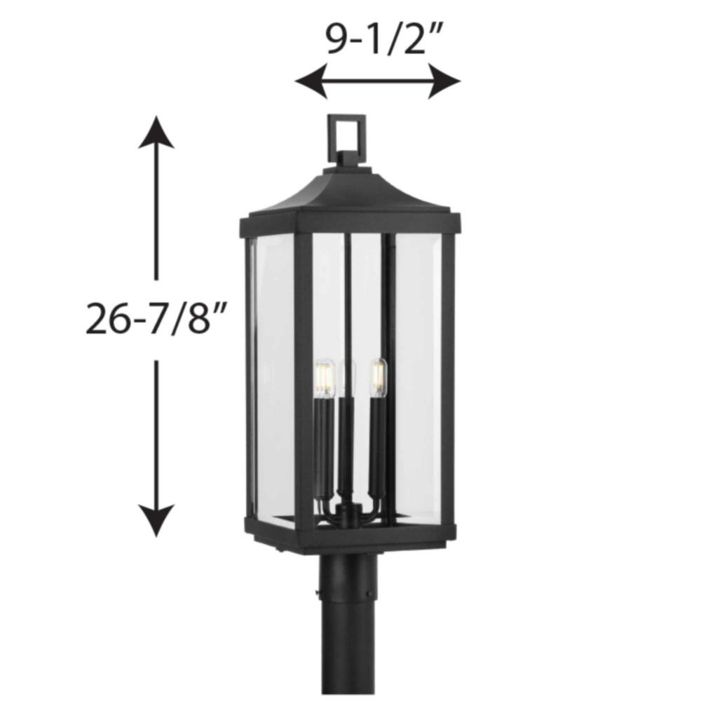 Incorporate a flawless lighting experience that fills your home with an understated elegance and rustic charm with this post lantern. This farmhouse-inspired masterpiece cradles clear beveled glass panes just right for offering a warm, welcoming glow to your friends and family. A traditional lantern frame with a beautiful black finish houses the light bases in this timeless design.