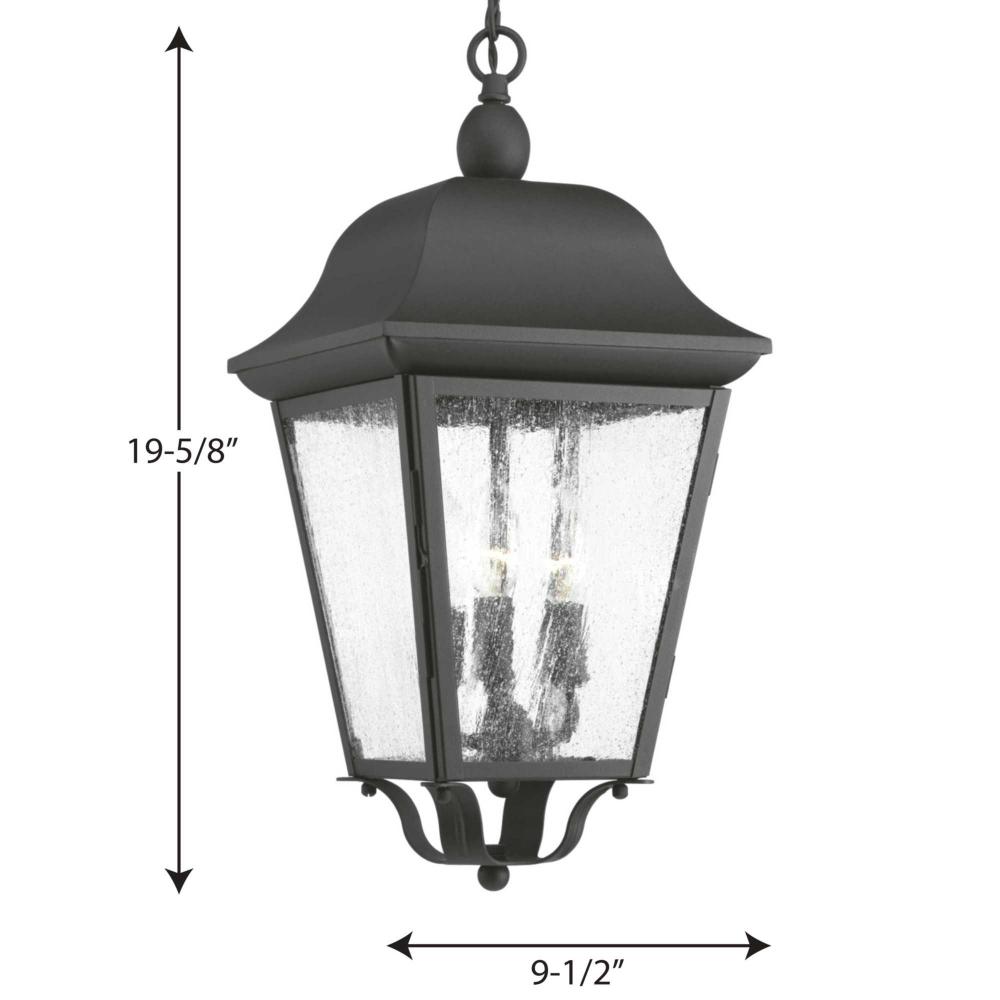 Black finish.;Updated classic style.;Seeded glass panels with traditional detailing.;Easy access for relamping.