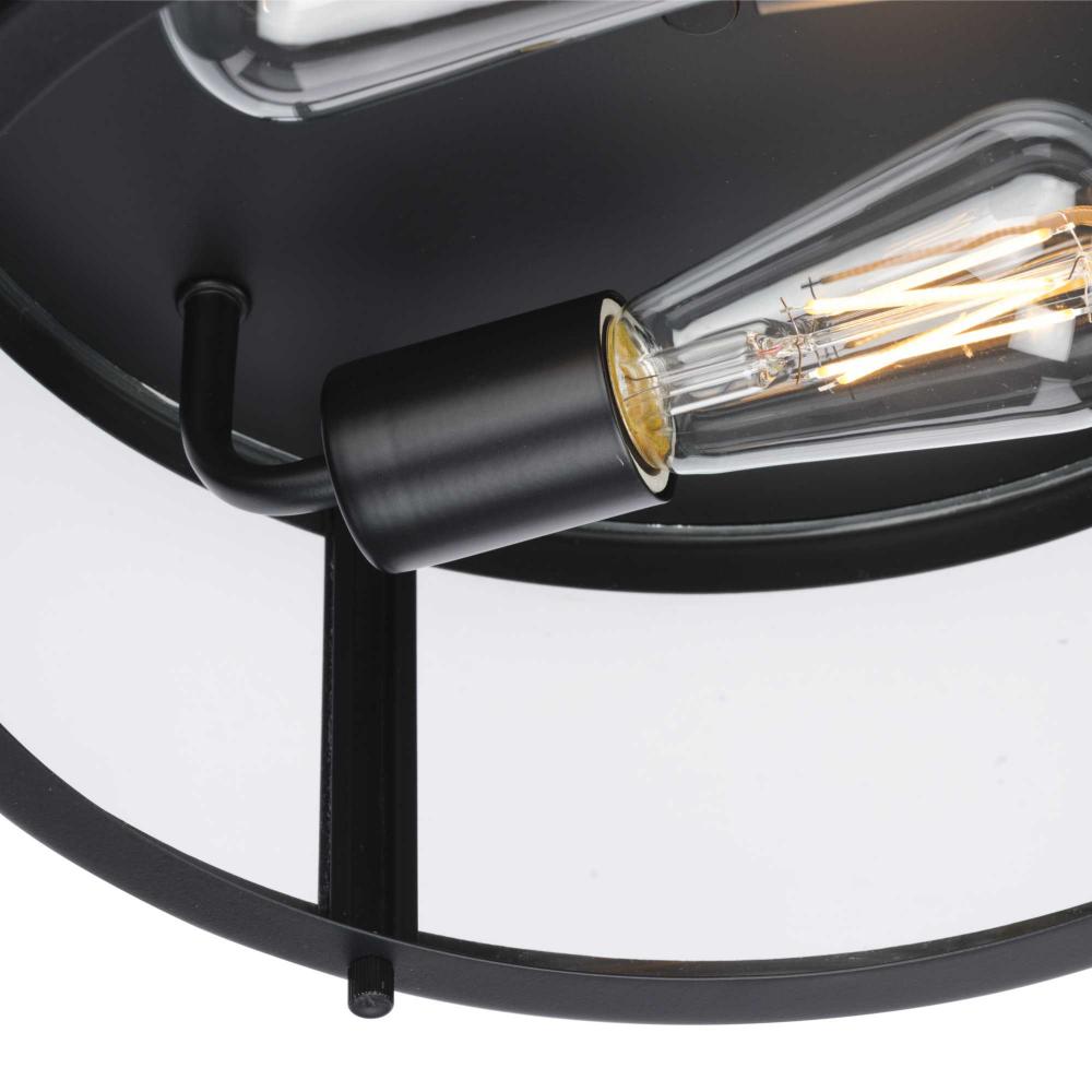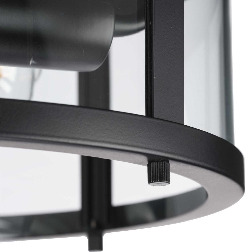 The light is coated with a soft matte black finish, creating a beautiful backdrop for the clear glass shade