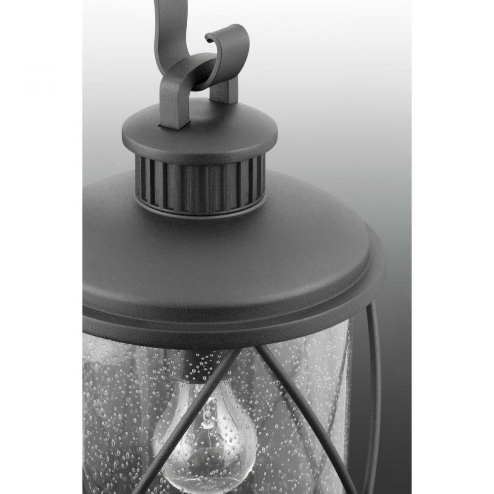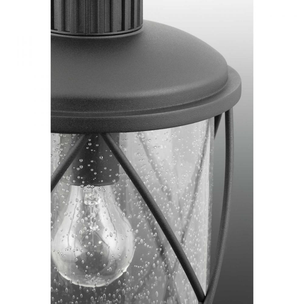 Hollingsworth hanging lantern features a crisscross design that surrounds clear seeded glass, emulating popular farmhouse decor. Ideal for a variety of transitional exteriors when paired with either vintage or traditional bulbs. Includes wall and post options.