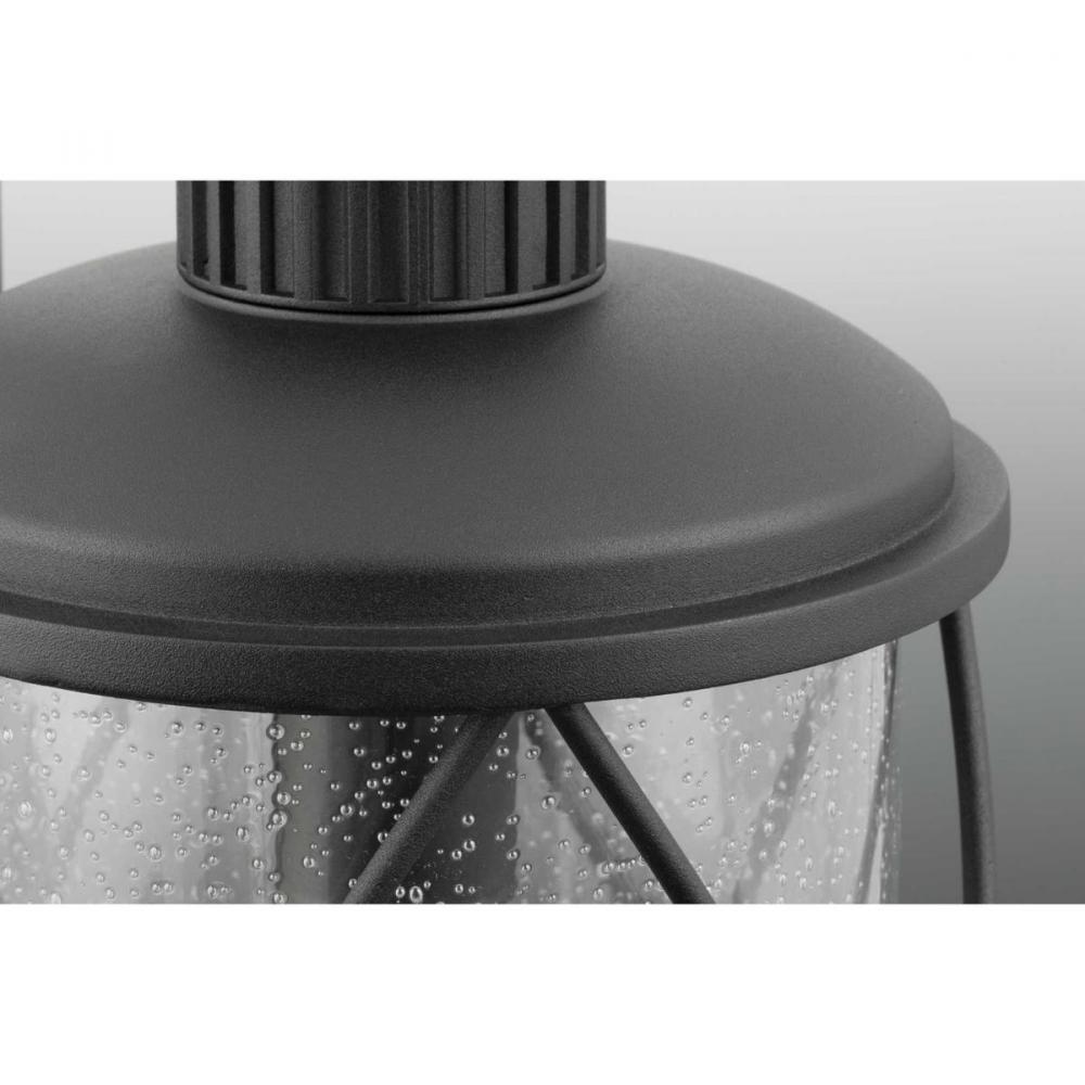 Hollingsworth lanterns feature a crisscross design that surrounds clear seeded glass, emulating popular farmhouse decor;Ideal for a variety of transitional exteriors when paired with either vintage or traditional bulbs;Textured Black finish;Hanging lantern