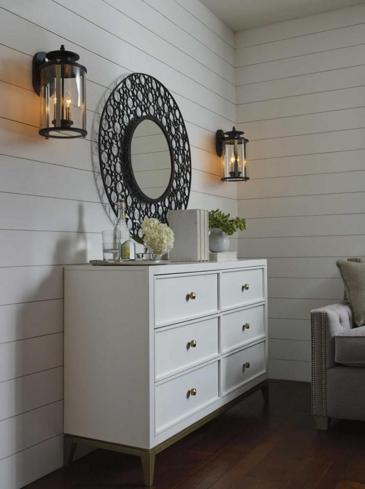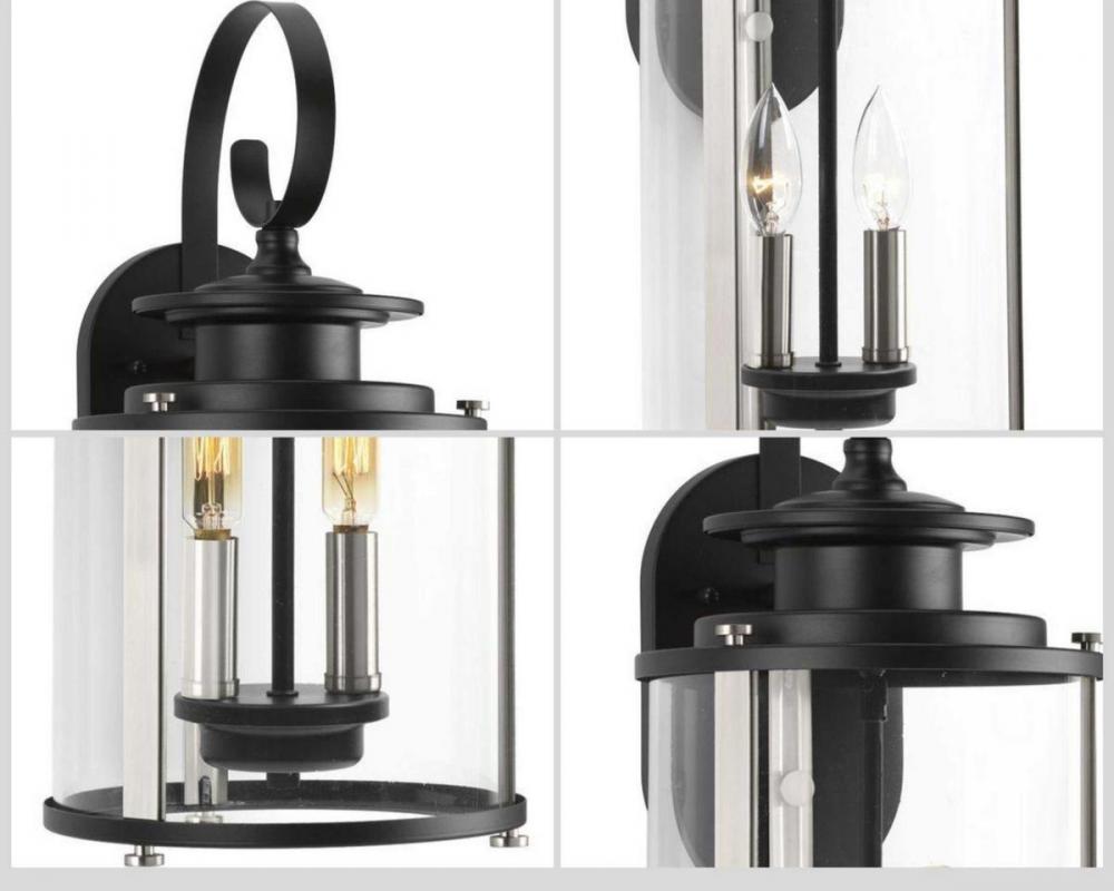 Profile features clean, modern metal fittings;Lantern is accented with contrasting metallic elements;A cylindrical frame is comprised of a clear glass diffuser;Black finish with Stainless Steel accents.