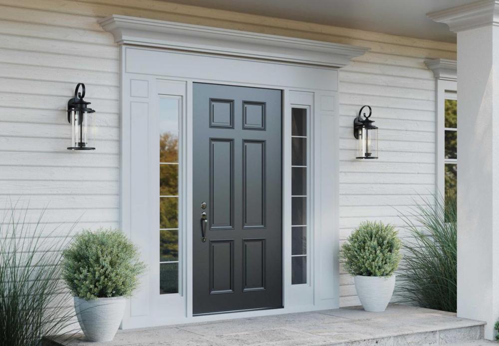 Squire two-light medium wall lantern features a classic traditional profile with clean, modern metal fittings. The Black finish is accented with contrasting Stainless Steel metallic elements, the cylindrical frame is comprised of a clear glass diffuser.