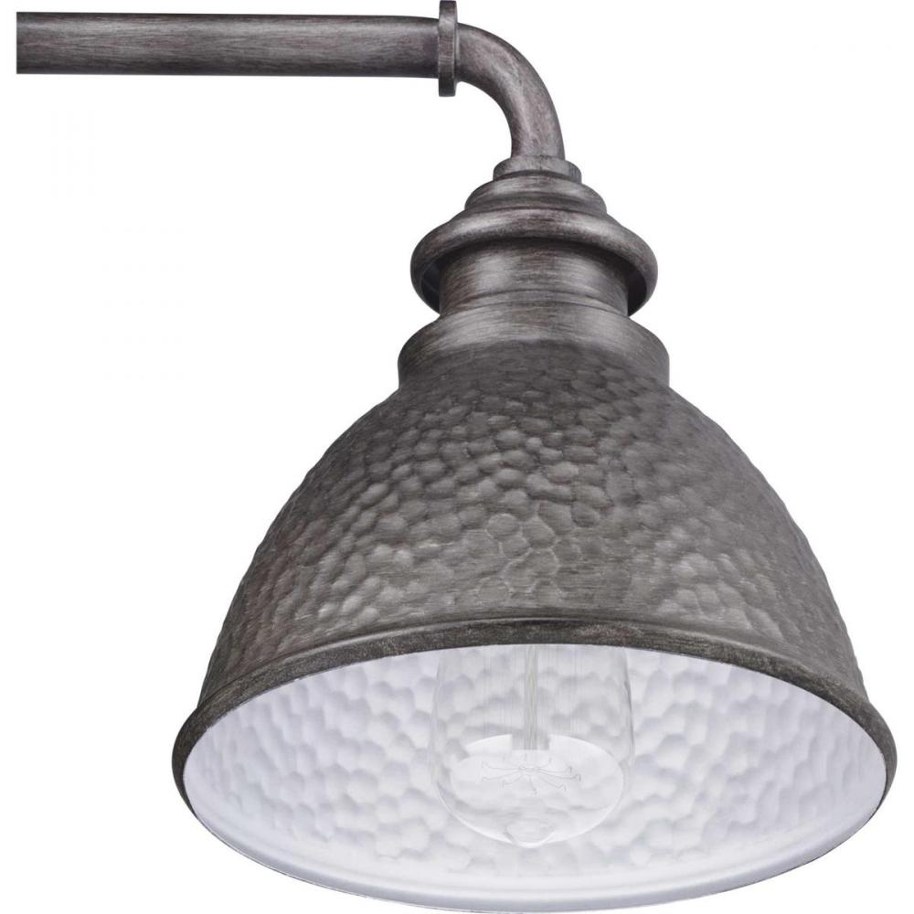Inspired by the warmth and beauty of hammered copper home accents, Englewood’s design displays elements of rustic craftsmanship. A one-light small wall lantern in Antique Pewter with the inside of the shade that features a metallic silver coating of paint, offering higher illumination reflection. Ideal for Farmhouse architecture design styles. Perfect for interior or exterior applications.