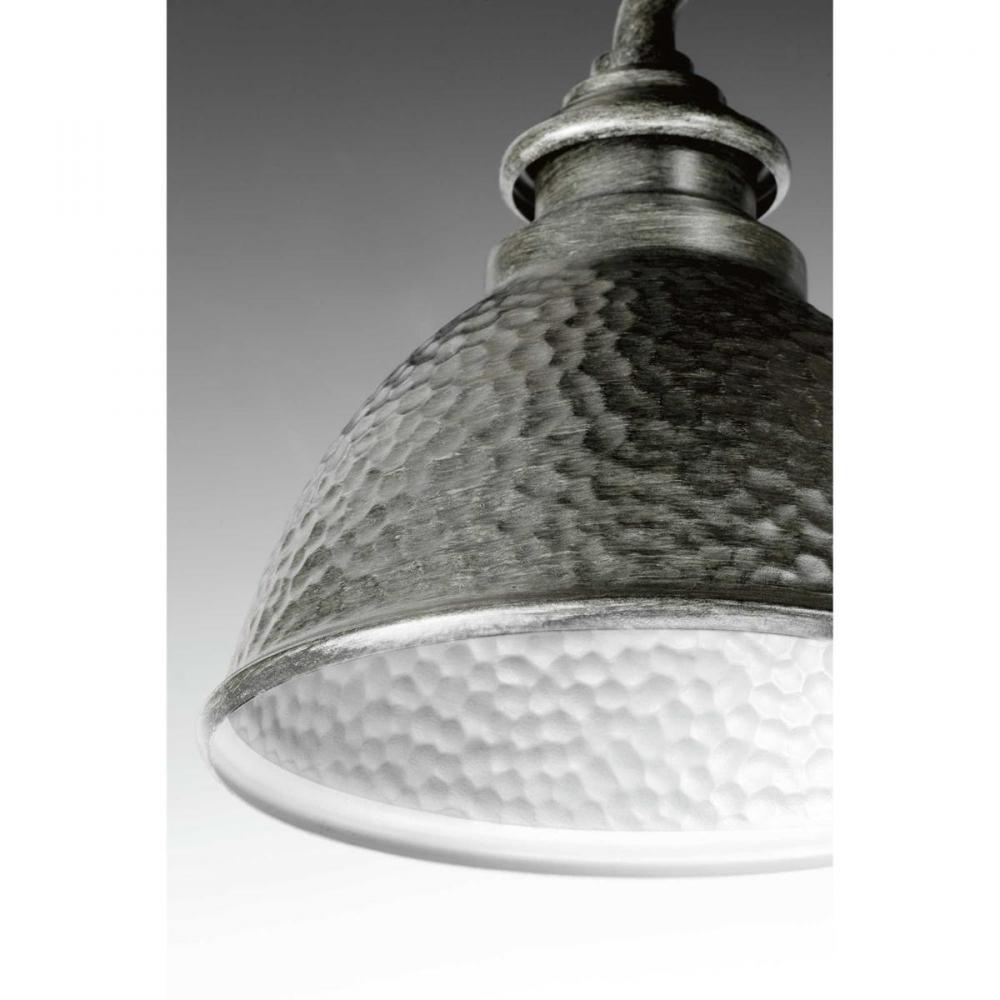 Inspired by the warmth and beauty of hammered copper home accents, Englewood’s design displays elements of rustic craftsmanship. A one-light medium wall lantern in Antique Pewter with the inside of the shade that features a metallic silver coating of paint, offering higher illumination reflection. Ideal for Farmhouse architecture design styles. Perfect for interior or exterior applications.